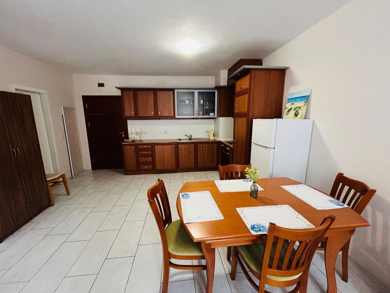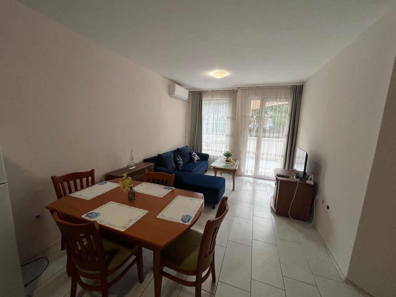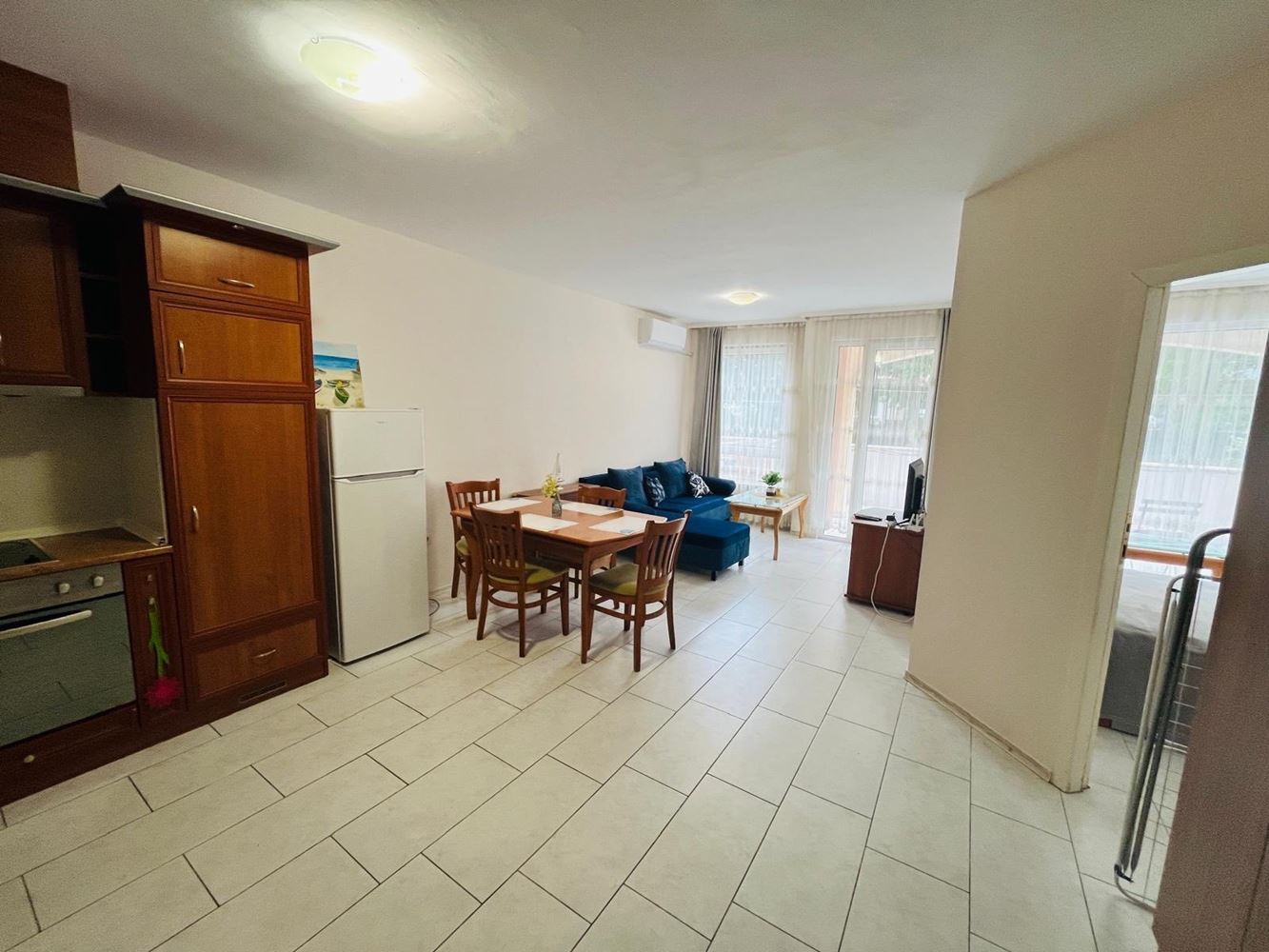 The apartment impresses with a large and pleasant terrace that reveals a beautiful view of Nessebar. This cozy outdoor space is perfect for enjoying morning coffee or relaxing in the evening after a dynamic day. The interior is well organized – offering a comfortable living area, a functional kitchen, a bedroom, and a bathroom. All rooms are fully furnished and ready to use.