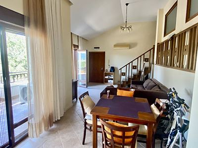On the first level, there is a bright and spacious living room with kitchen, with access to a large terrace offering impressive panoramic views of the sea and the mountains. This space is ideal for relaxation, morning coffee, or peaceful evening moments surrounded by nature.