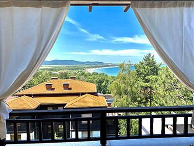 We offer for sale a spacious one-bedroom apartment on two levels, located in one of the most preferred holiday complexes in the town of Sozopol. The property has a total area of 83 m², is situated on the third and top floor, and impresses with a unique view of the sea, forest, and mountains, creating a feeling of space, tranquility, and complete harmony with nature.