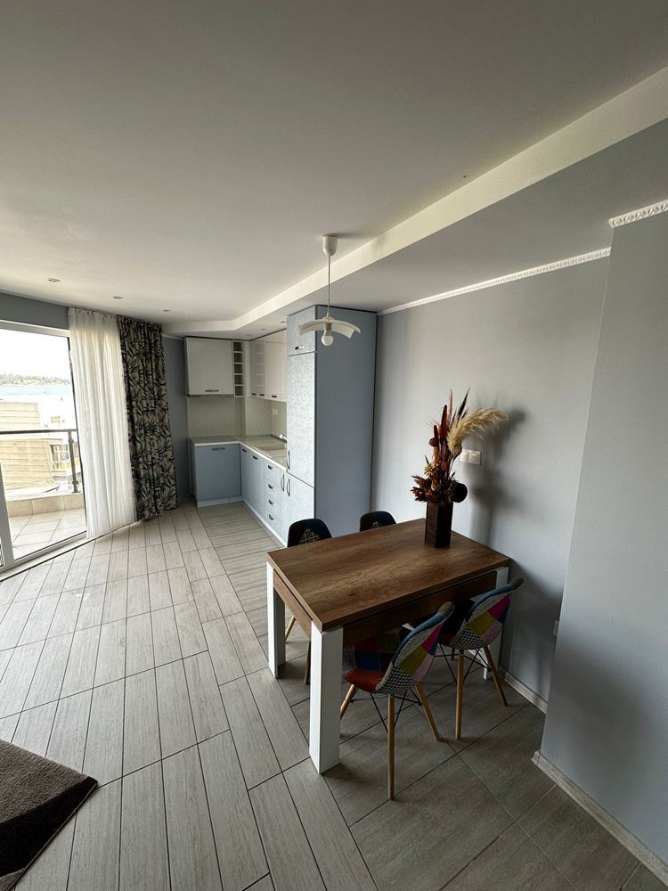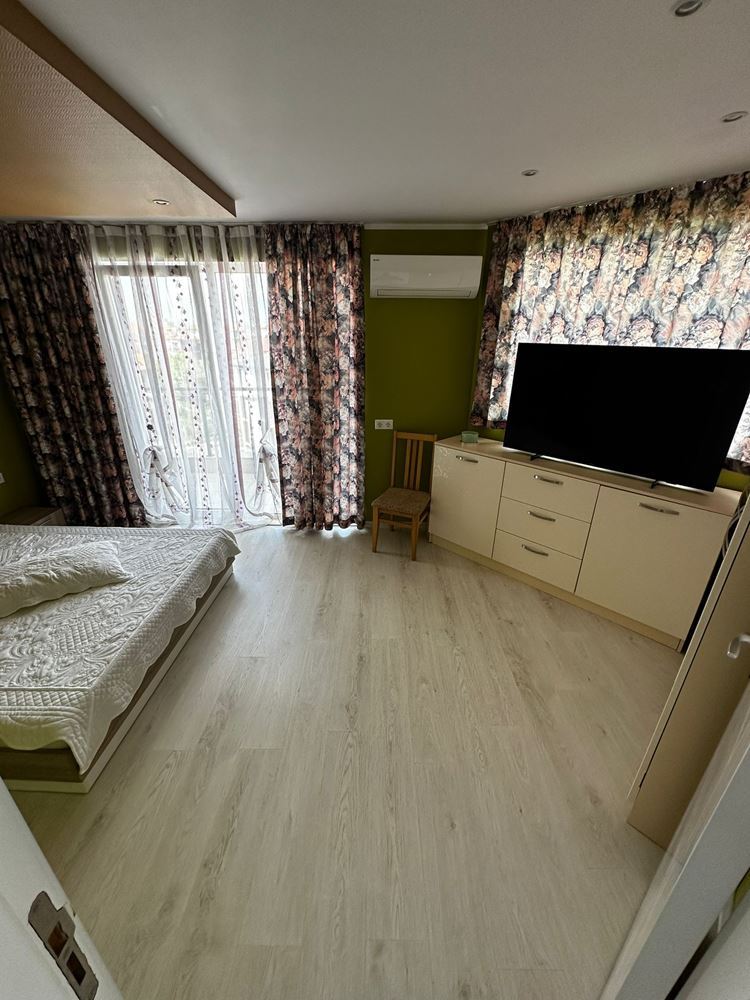 One bedroom apartment with sea view on the fifth floor with total area of 102,56 sq. m. offers comfortable and stylish living. The apartment is fully furnished and offers great conditions for living or resting only 50 m. from the sea. In addition to the main dwelling in the basement there is a closet that provides additional storage space. The layout of the apartment includes a spacious kitchen-living room, large bedroom and bathroom. Two terraces with unique sea views add to the appeal of the apartment and allow you to enjoy the fresh air and views. The apartment is located in a complex with act 16. There is a separate water and electricity lot. A variety of amenities are offered here such as a swimming pool, billiards, playground, and children's room. A barbecue and gazebo are provided for recreational use. The distance to the sea is only 50 meters, which makes the location of the apartment very convenient for beach lovers. For car owners there is parking both on the complex and outside. All these features make this apartment an attractive option for comfortable living in the area of seaside holidays.