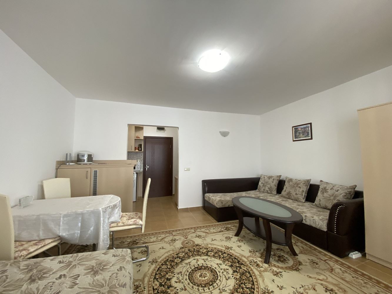 We present to you a cozy and functional studio, located on the third floor in a residential building in Pomorie – one of the most preferred seaside and balneological resorts on the Bulgarian Black Sea coast. The property has a total built-up area of 45,04 m² and is sold fully furnished with furniture, equipment, and electrical appliances, ready for immediate occupancy or rental. The dwelling consists of an entrance hall with a kitchenette, a spacious living room, a bathroom with toilet, and a large glazed terrace, which can be used as an additional place for relaxation or a work corner. The large windows provide natural light throughout the day, creating a warm and welcoming atmosphere, suitable both for vacation and year-round living.