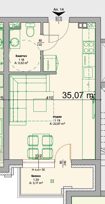 The property has a total area of 40.89 m² and is situated on the first residential floor. The space is functionally organized and allows for comfortable zoning of a living area with a kitchenette and dining space, a sleeping corner, and access to a cozy balcony – an ideal place for a morning coffee or evening relaxation. The bathroom is separate and fully finished, adding practicality and comfort.