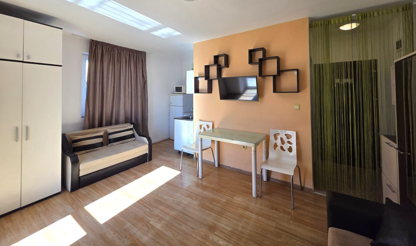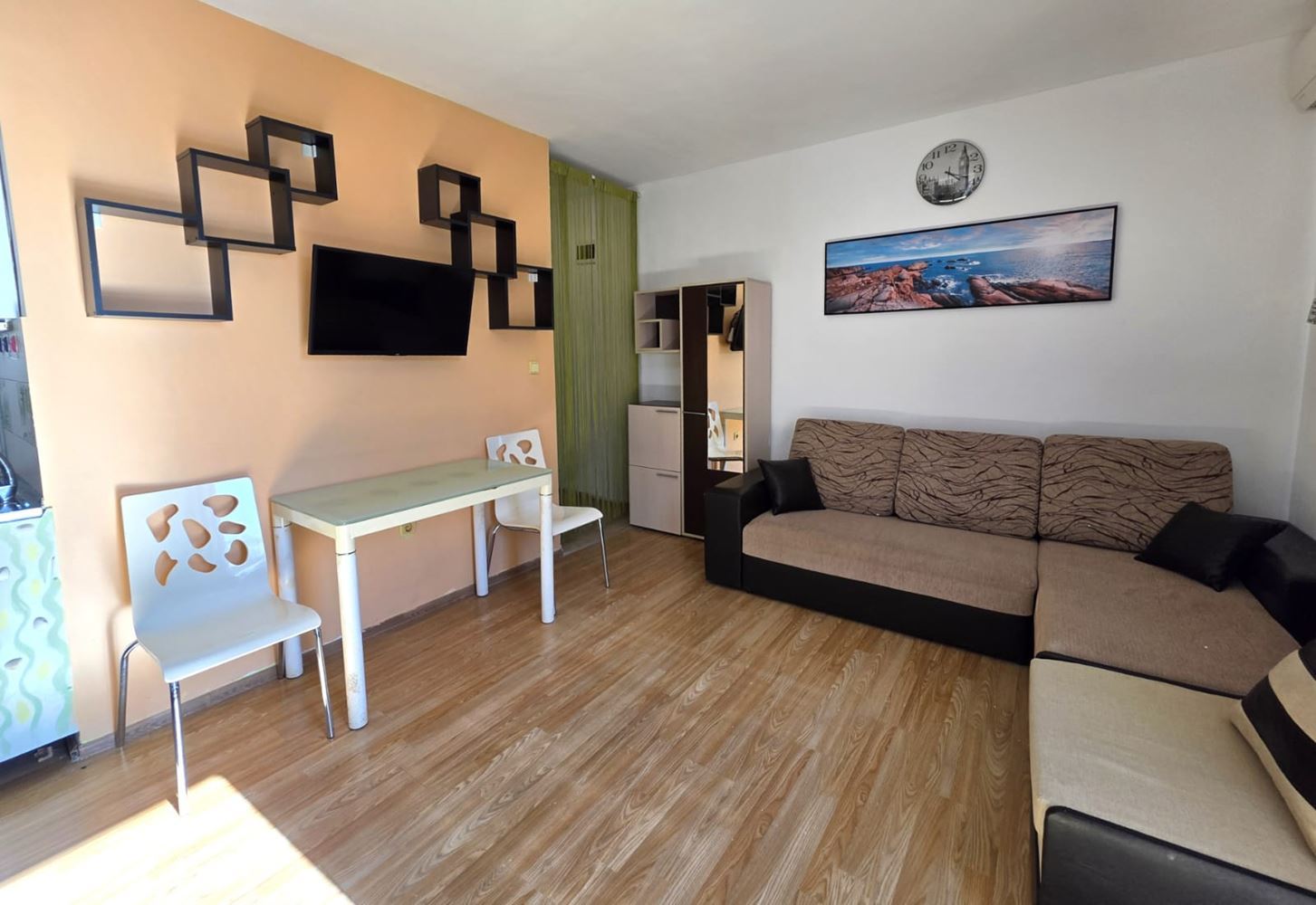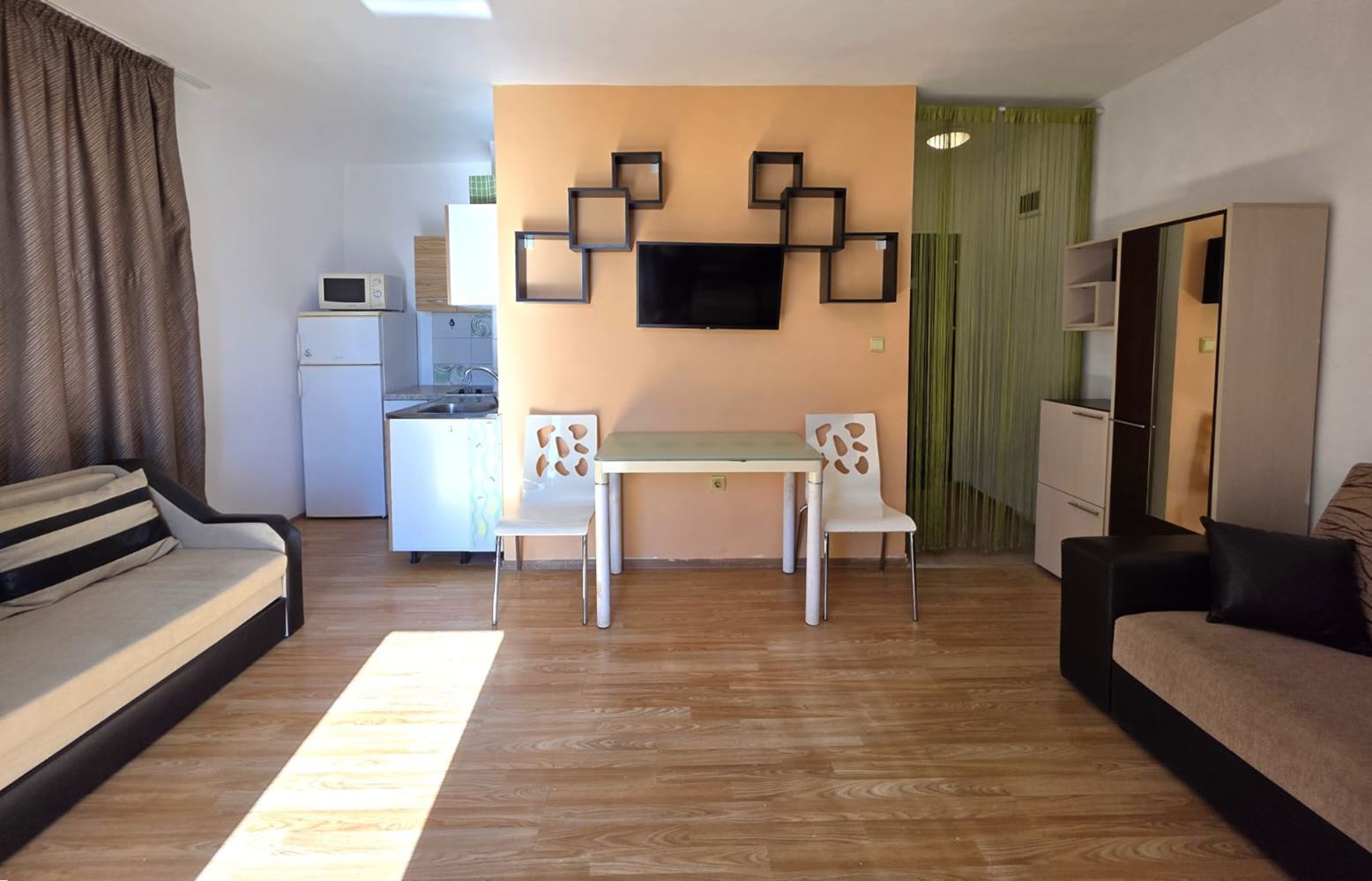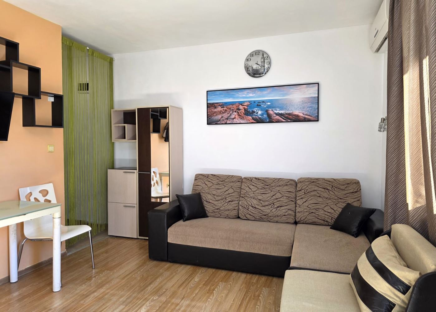 We offer to your attention a cozy studio in beautiful Ravda, located in a modern complex, just 3 minutes walk from the breathtaking beach. This apartment provides the necessary comfort and convenience for your sea holiday. The studio is located on the third floor and offers a total area of 34,27 m². The main room serves as both living room and bedroom. The adjoining balcony is the perfect place for your morning coffee or for romantic outdoor dinners. The apartment has a modern bathroom for your convenience, and an elevator in the building provides easy access to the floor.