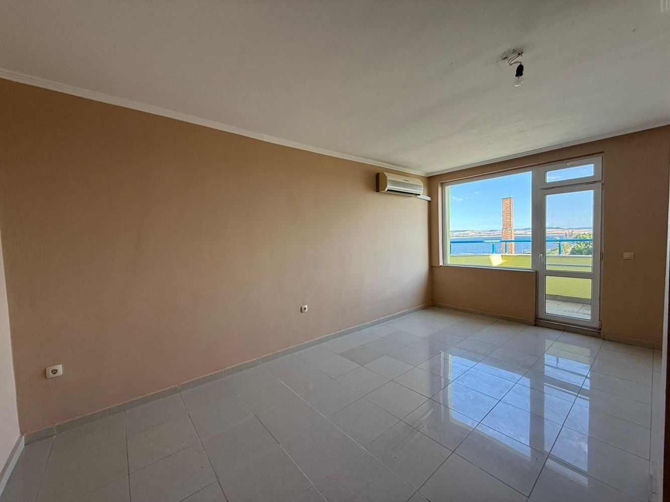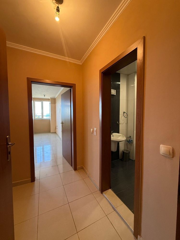 Layout: entrance hall, bathroom with toilet, spacious main room with potential for a kitchen corner, sleeping area, and living space, large storage/wardrobe, and terrace with impressive sea views. The property includes one spacious room, balcony, and bathroom. It has a confirmed residential status with separate utility meters for water and electricity – ensuring convenience and cost-efficiency for year-round living. The elevator provides easy access, and the combination of sea air and proximity to Pomorie Salt Lake creates an exceptional atmosphere for relaxation and rejuvenation.