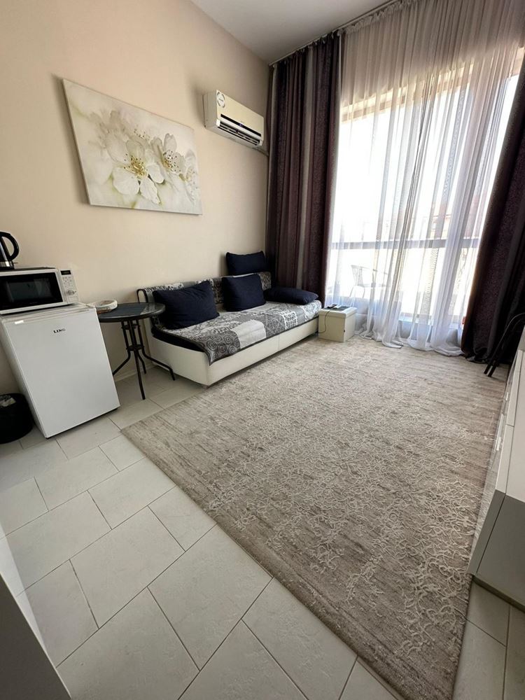 We offer you a cozy studio with a total area of 44 m2, located in one of the most desirable resort areas on the Bulgarian Black Sea coast. The property has one spacious room combining entrance hall, living area and modern kitchenette. For your comfort, there is also a stylishly furnished bathroom as well as a lovely terrace with amazing mountain views.