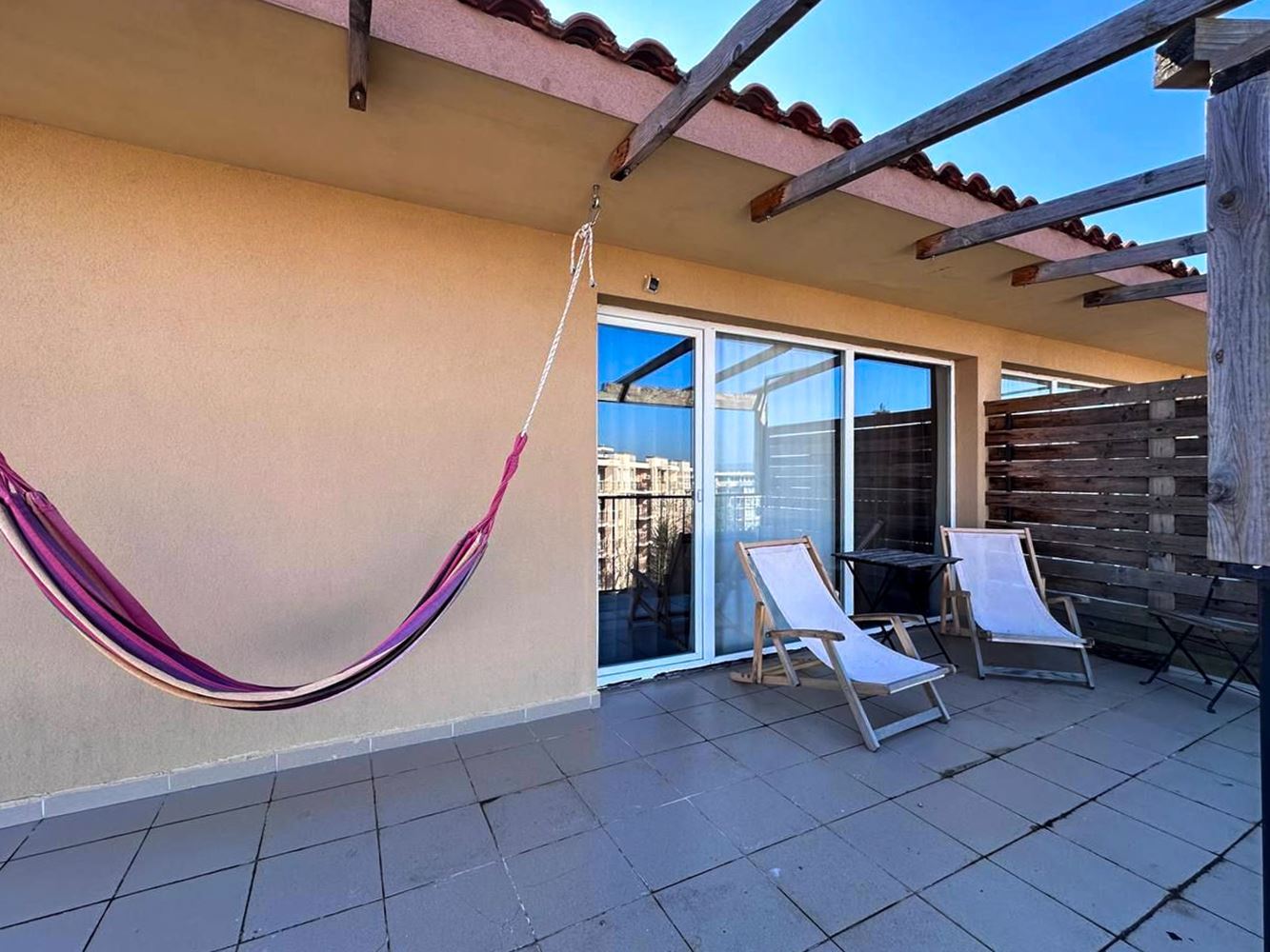 The complex offers a swimming pool and other amenities for a full holiday experience. This is an ideal place for families who want to enjoy tranquility while also having opportunities for active leisure on site. Additionally, the entire infrastructure of the prestigious resort is within walking distance, including supermarkets, restaurants, cafés, and a water park. This makes the location extremely convenient and highly preferred.