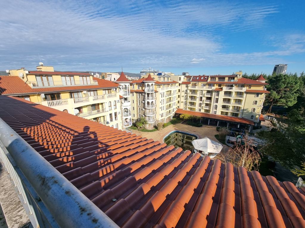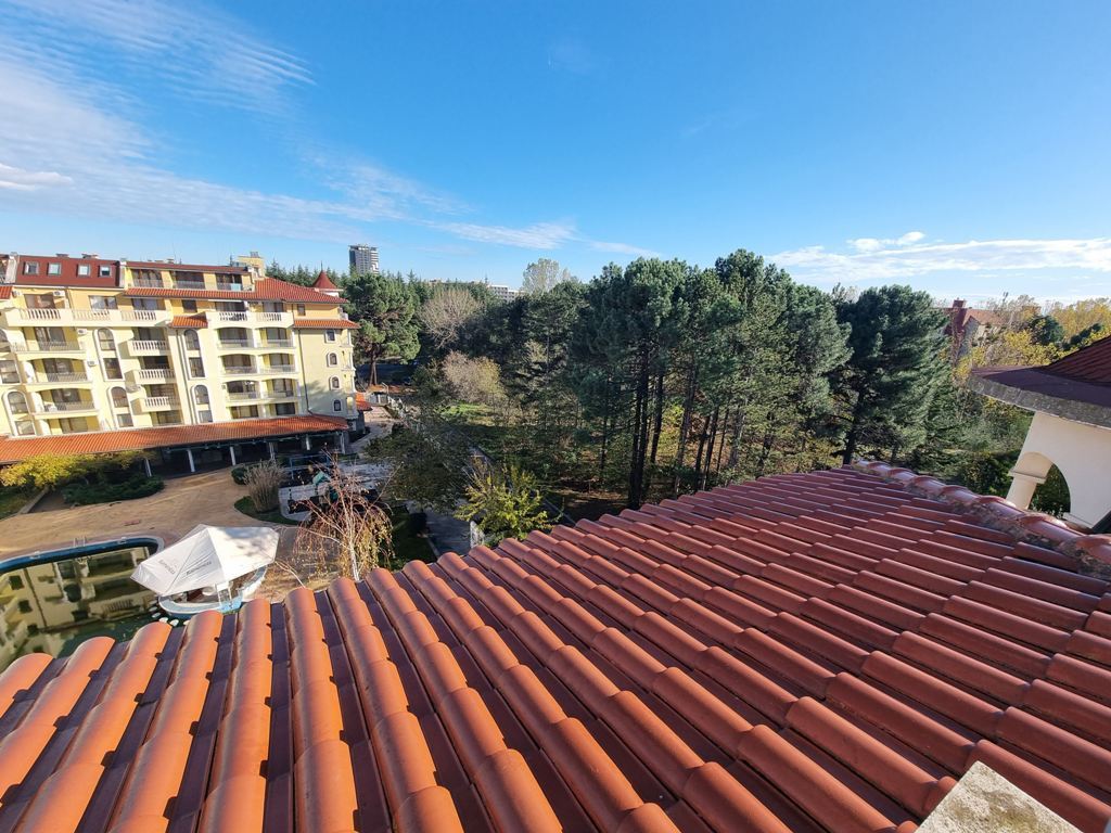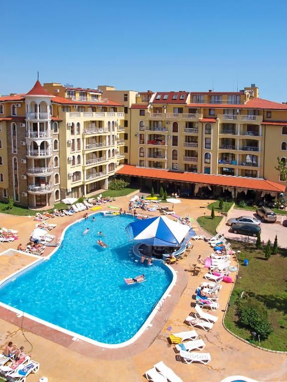 Spacious three-room apartment with pool view in a prestigious complex in Sunny Beach