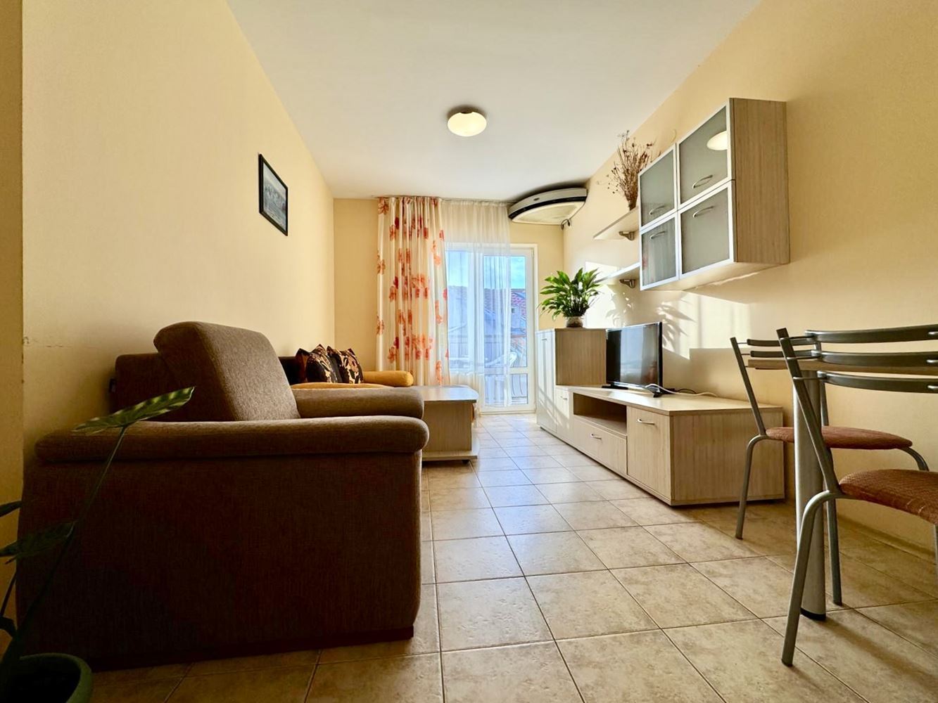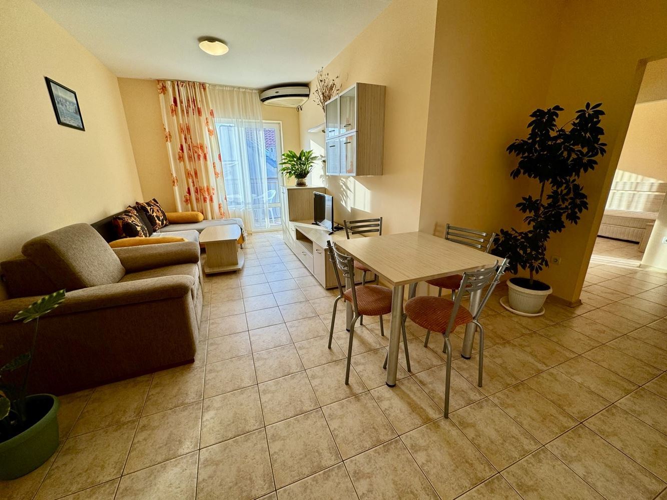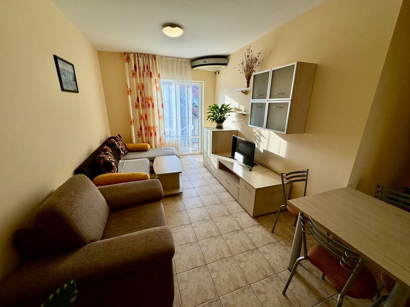 For sale is a spacious two bedroom apartment in the picturesque resort of Sveti Vlas! Enjoy the combination of comfort and elegance in this fully furnished apartment with a total area of 70 m². The apartment has a spacious living room combining kitchen and dining area, ideal for family dinners and pleasant gatherings. The two cozy bedrooms provide privacy and tranquility, and the large bathroom is equipped with all necessary plumbing for your convenience. Step out onto the spacious terrace and enjoy the stunning views of the complex.