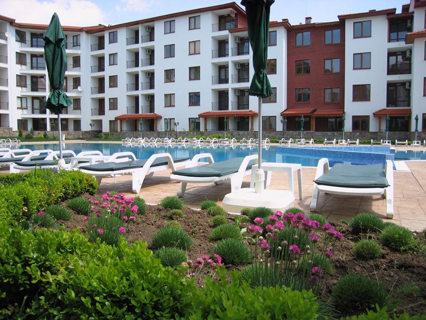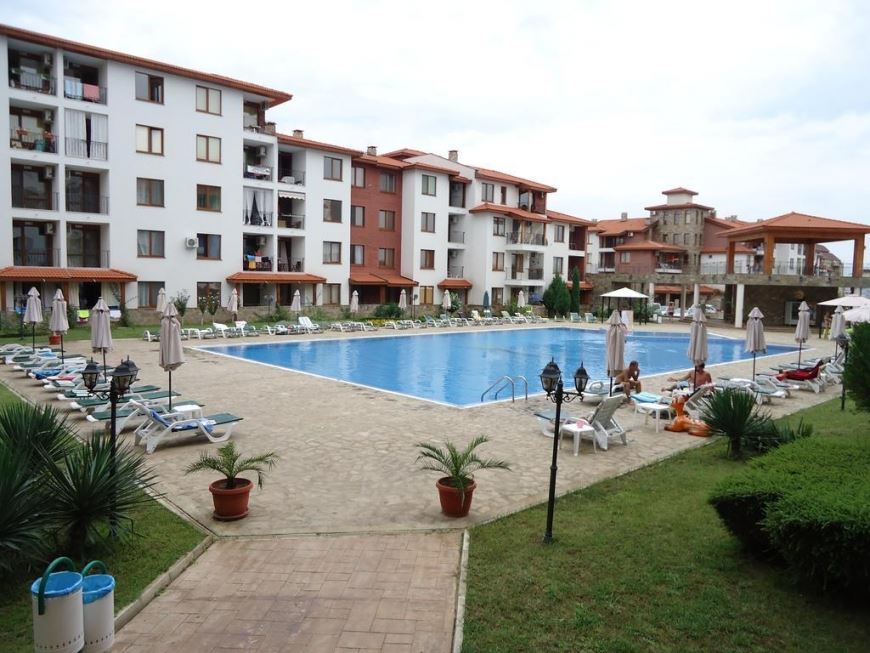 Spacious two bedroom apartment with pool view in a prestigious complex in Nessebar