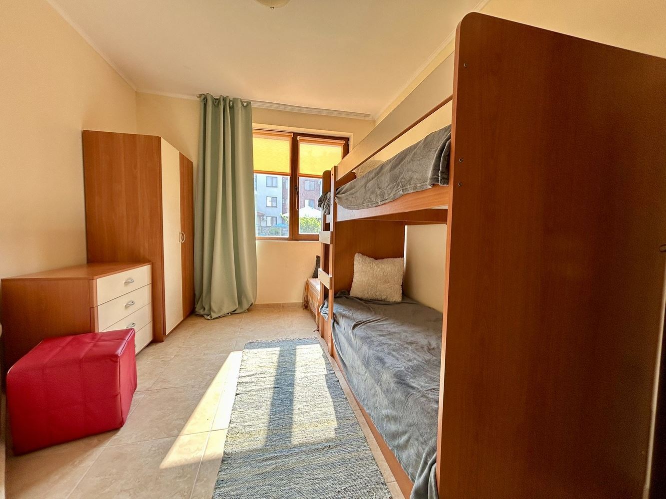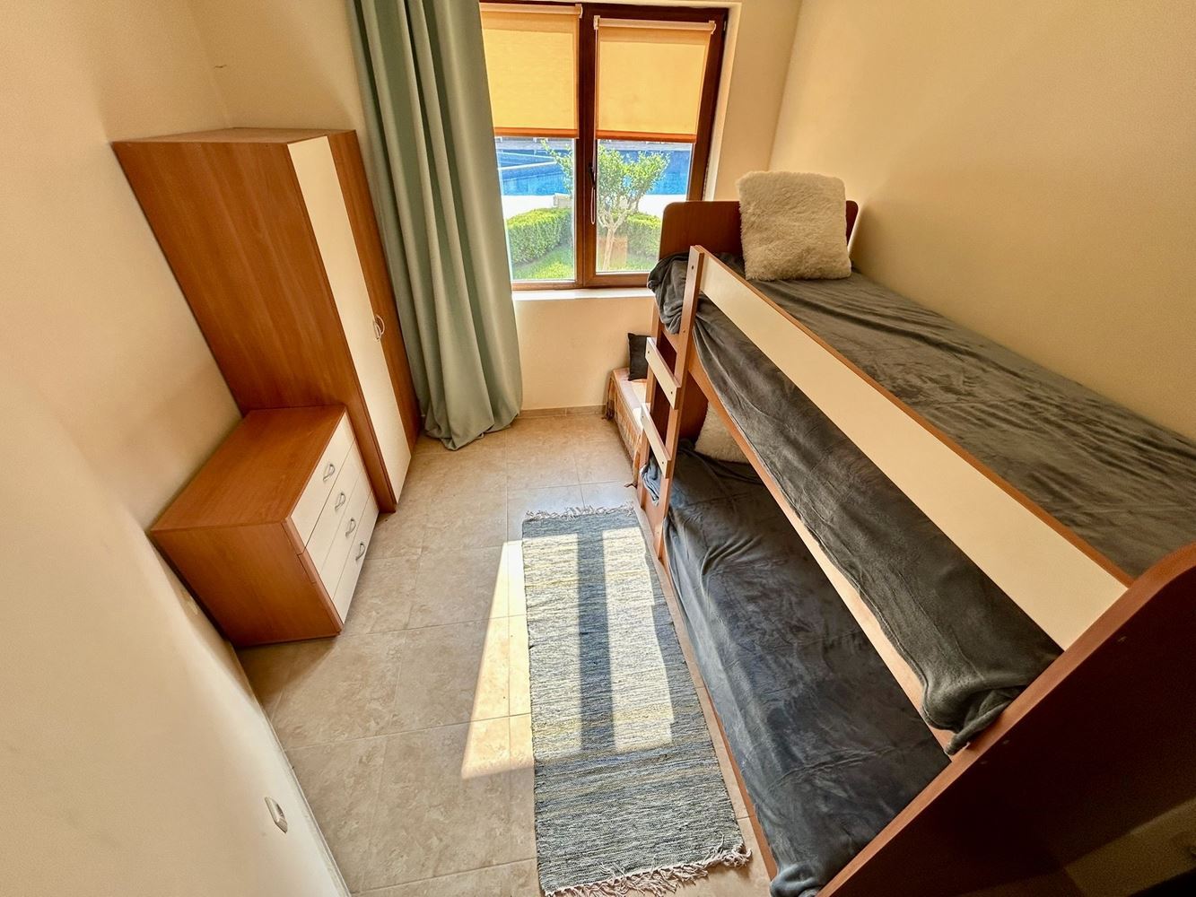 We offer for sale a stylish and functional two bedroom apartment located on the ground floor in a prestigious complex in Nessebar. With a total area of 85 m2, this property is the ideal choice for both permanent living and investment with the potential for high rental yields. The apartment has two cosy bedrooms offering comfort and privacy. The modern living area is spacious and open, with direct access to the balcony from which you can enjoy a relaxing view of the pool. The two well-appointed bathrooms provide comfort for the whole family or guests.