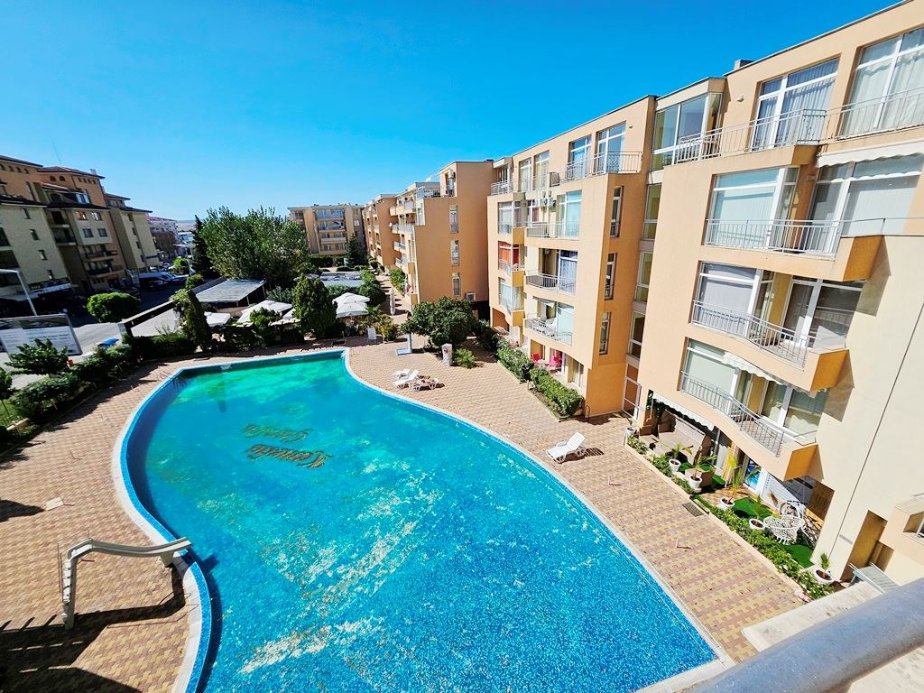 We present to you a bright and functional two-bedroom apartment with an impressive view of the pool, located in one of the most desirable areas of Sunny Beach. With a total area of 82 m², this property offers a well-balanced combination of space, comfort, and excellent location – ideal both for personal use and as a profitable investment.