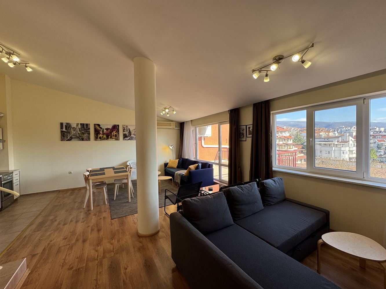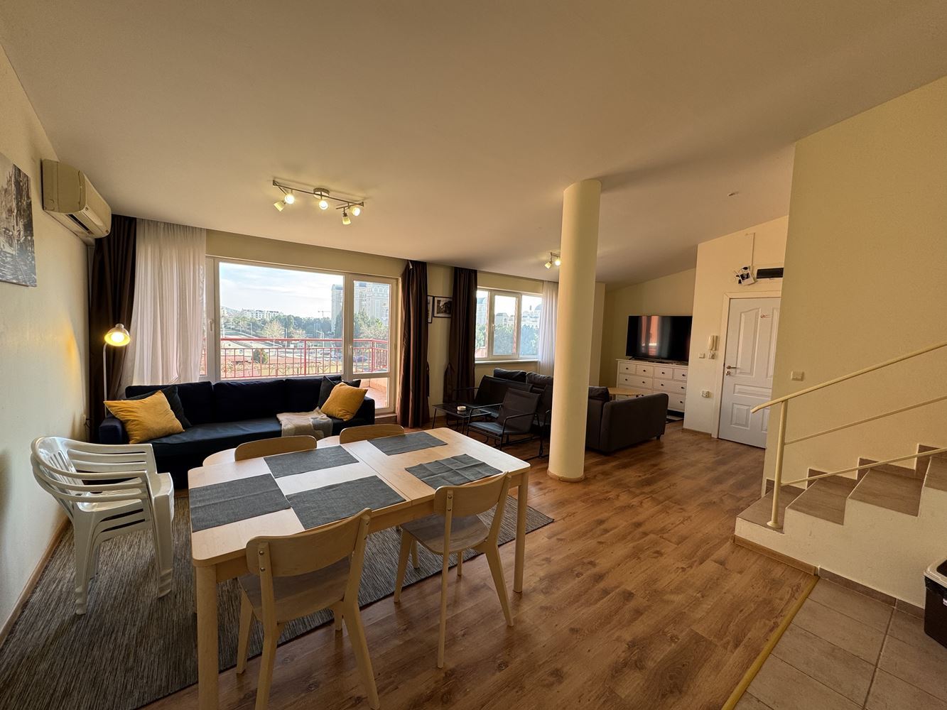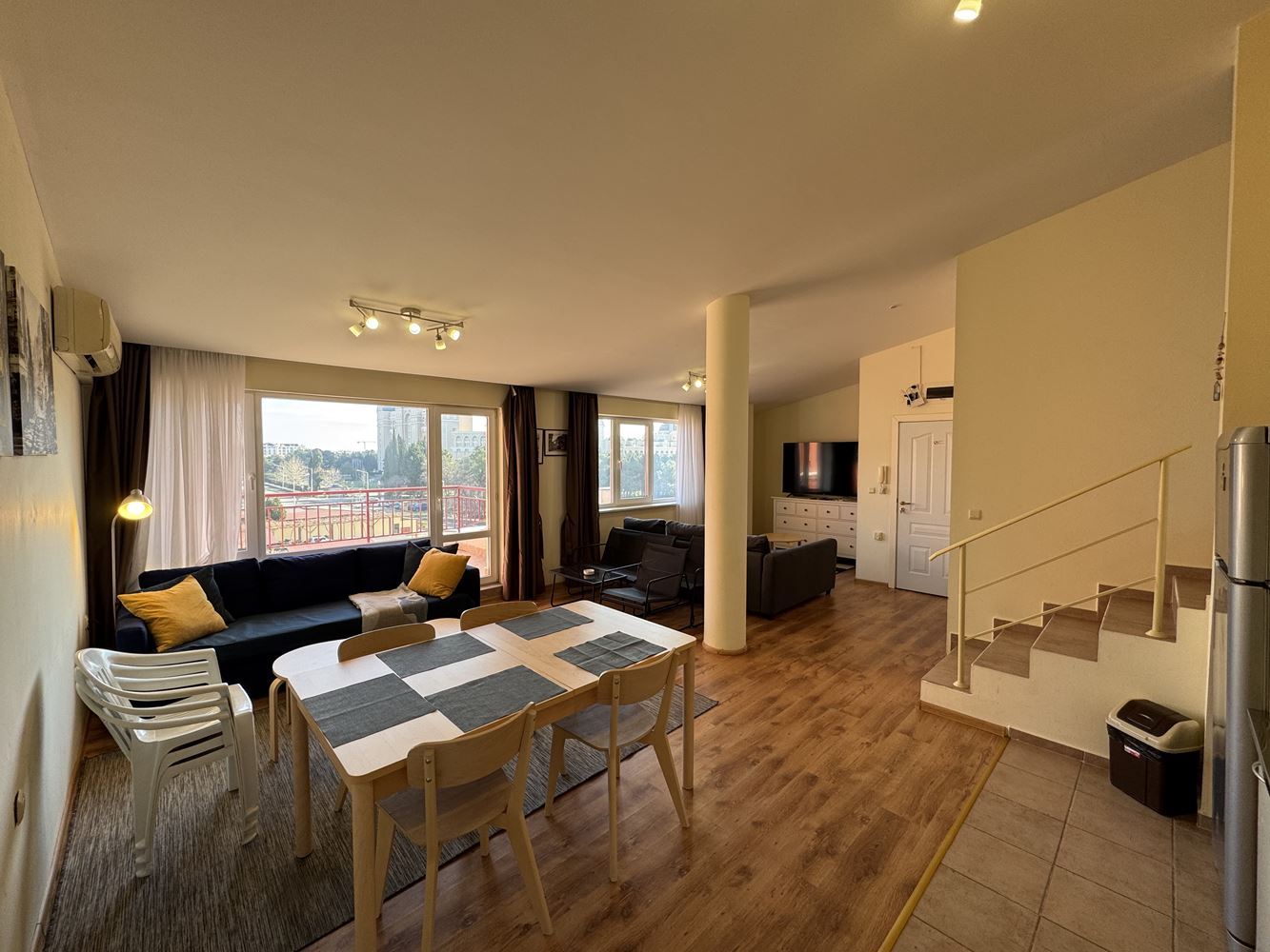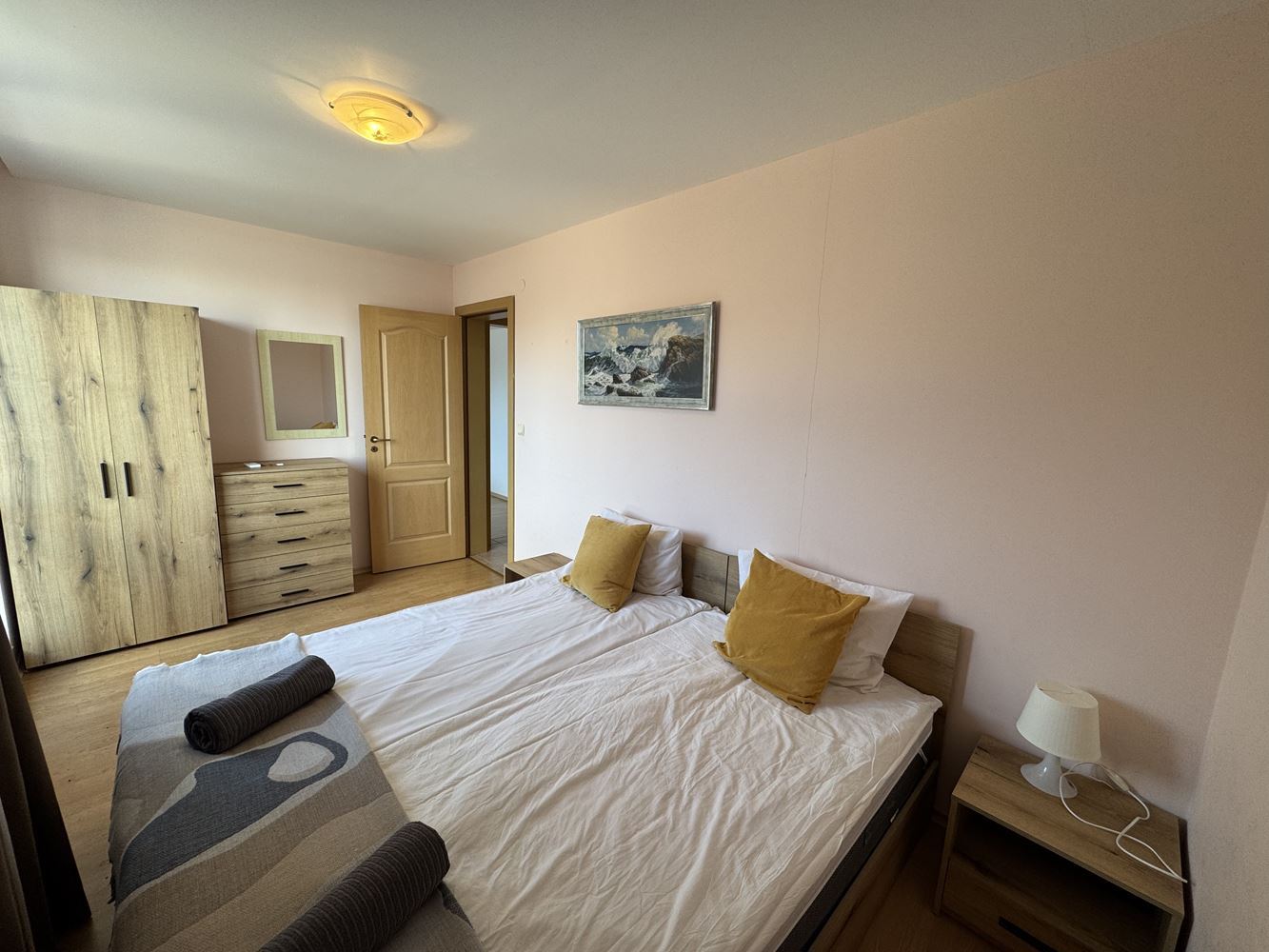 We present a luxurious two-bedroom apartment with a total area of 120 m², located on the fourth floor of a prestigious complex in the resort of Sveti Vlas. The apartment offers a breathtaking sea view, creating a sense of space, light, and tranquility, combining the comfort of a modern home with the unique feeling of seaside living.