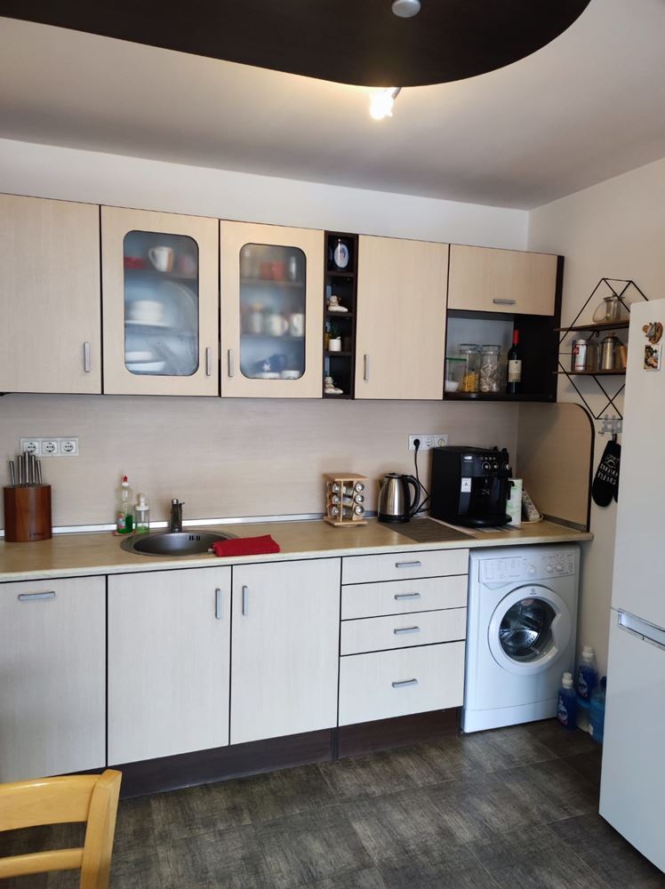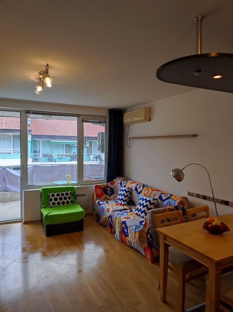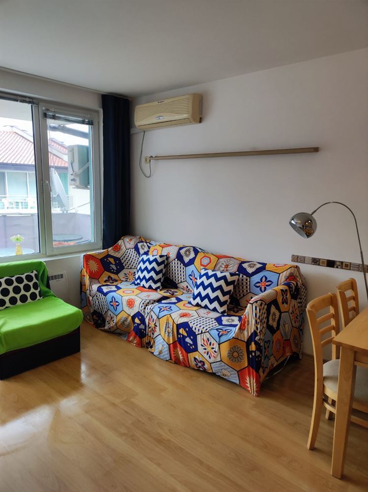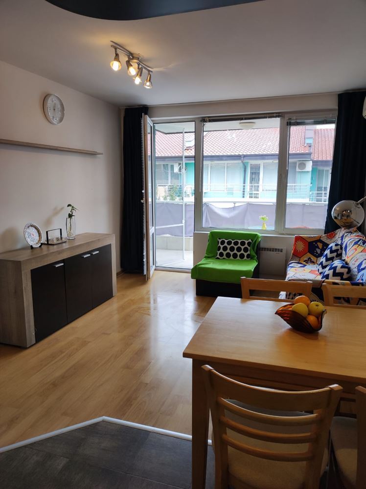 Spacious two-bedroom flat in a complex built 200 m away from the sea in Sarafovo. The flat consists of entrance hall, two bedrooms, large living room with kitchen, balcony, bathroom with shower. The apartment is fully furnished and equipped. The terrace is overlooking the inner yard. There is a swimming pool, a café, a fitness and a sauna in the complex. Sarafovo is considered to be a prestigious area, located on the very seashore and is famous for its wide beach, about 4 km long, covered with fine clean sand.
