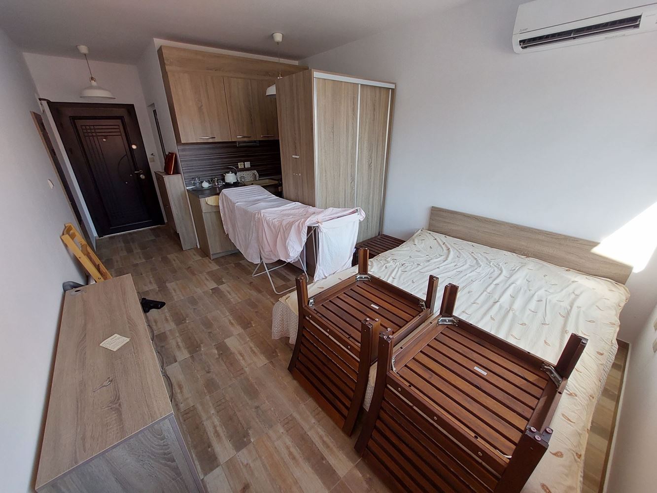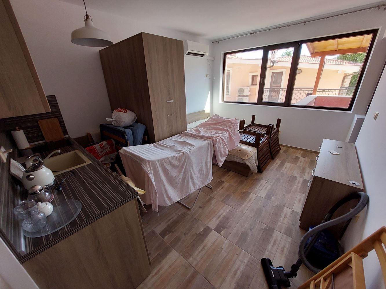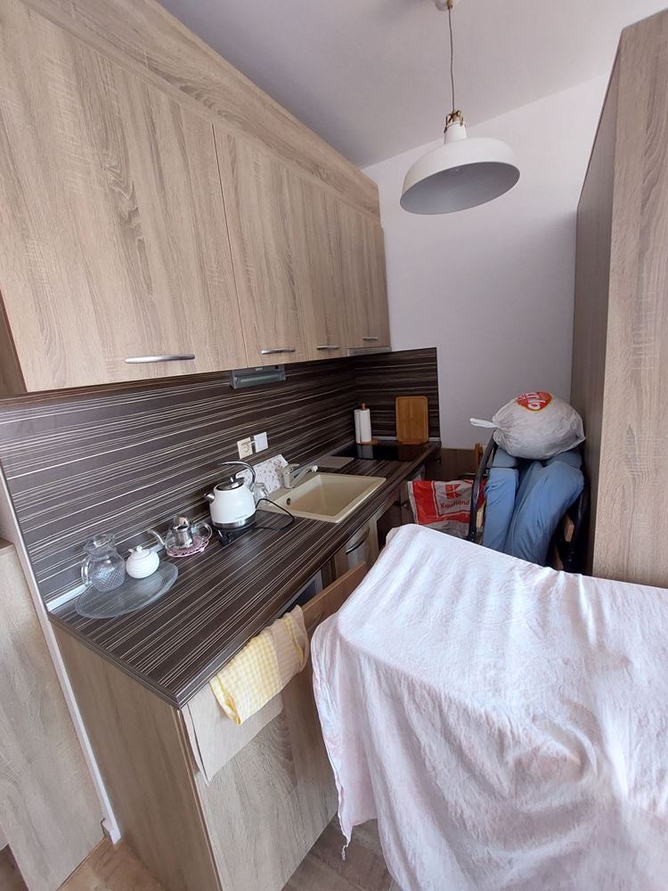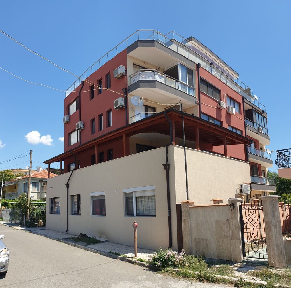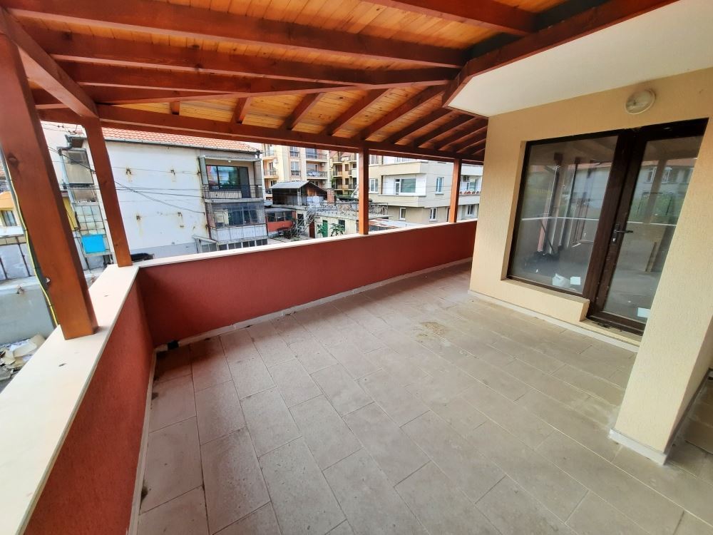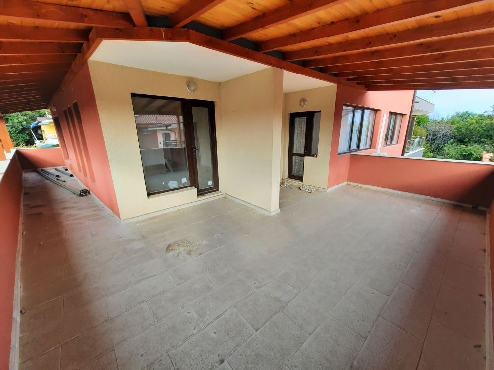 A spacious three bedroom flat of 120 m2 consisting of two adjoining apartments, namely a fully furnished studio of 38 m2 with a private terrace and a two-room apartment in rough construction (no renovations) of 82 m2 with a private terrace. Possibility of conversion into a two-bedroom flat with a large shared terrace, two bedrooms and two bathrooms. The building is located 200 m away from the sea in the prestigious sea quarter Sarafovo. Ideal for year round living.