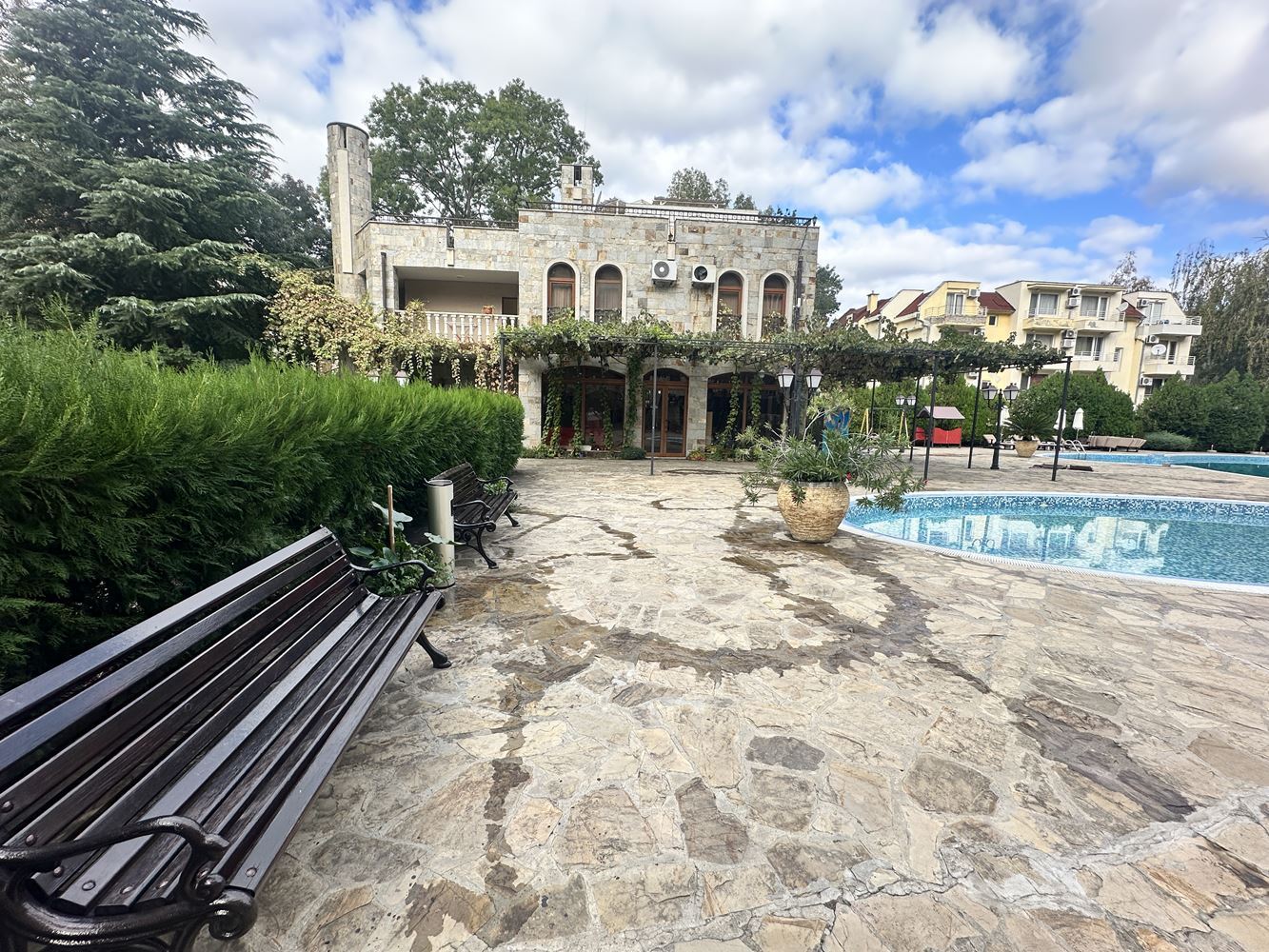 The complex offers a rich infrastructure and amenities for its owners and guests. There is a pool for children and adults, where you can refresh and enjoy the summer days in a calm and pleasant environment. For the convenience of cars, an underground parking is provided, which ensures a secure parking place and additional comfort. For complete peace of mind and security, the complex has security and access control, as well as a reception and accommodation services, which guarantee order and organization. In addition, the complex has a restaurant, where you can enjoy delicious food and a pleasant atmosphere without leaving the territory.