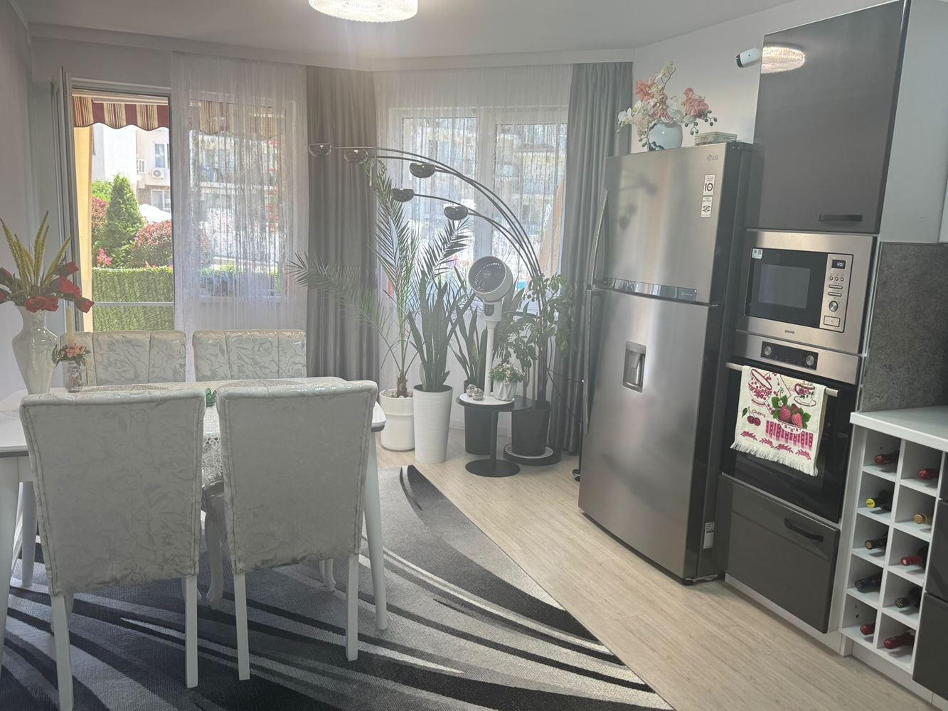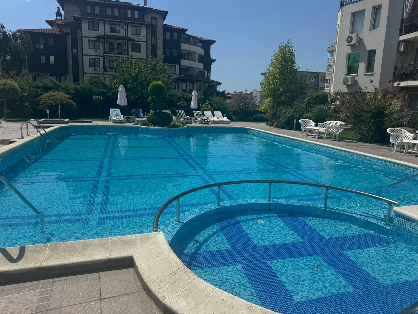 This two-bedroom apartment in a central complex in St. Vlas is the perfect combination of comfort and natural beauty. Located only 100 meters from a sandy beach with a gentle sea entry, it is ideal for families with children. The complex itself features a well-maintained inner area with plenty of greenery, a swimming pool with a children’s section, free sunbeds and umbrellas, and a safe playground for the little ones.
