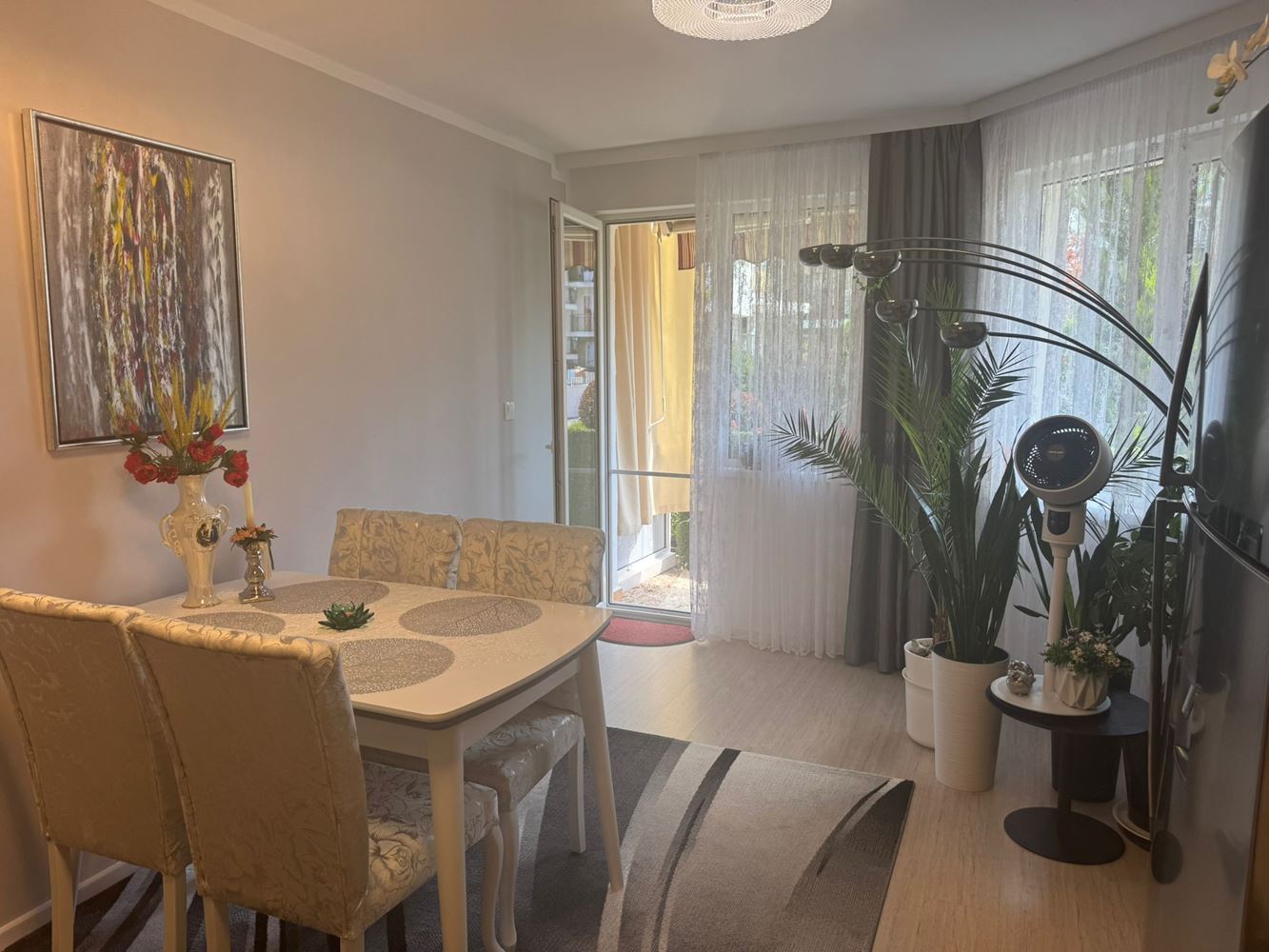 The apartment has a total area of 77.05 m² and is located on the ground floor – easily accessible and convenient. Inside you will find a spacious living room with a kitchenette, two cozy bedrooms, a bathroom with WC, and a comfortable balcony with direct access to the pool and garden – the perfect place to relax and enjoy the fresh air. The property also features underfloor heating.