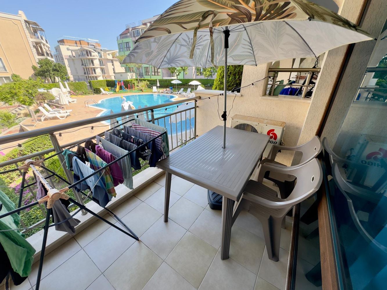 Studio for sale in the picturesque resort of Ravda - the perfect choice for your summer retreat or investment! This charming studio, with a total area of 38,00 m², offers you comfort and convenience at your fingertips. Situated in an attractive location, the complex is only about 100 metres from the stunning beaches, ensuring you will enjoy the sea breeze and magical sunsets every day. The property comprises a bright and spacious room with access to a balcony which offers a tranquil view of the pool. Fully furnished and equipped, making it ready for immediate occupancy or rental. The entire complex has an elevator which provides added convenience.