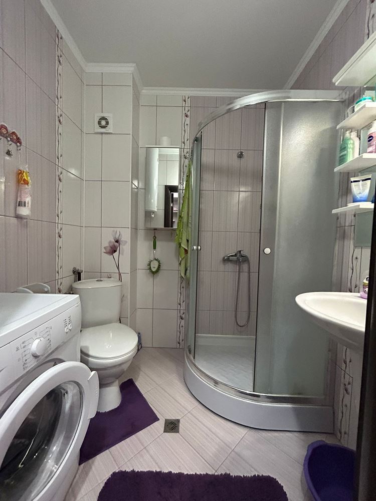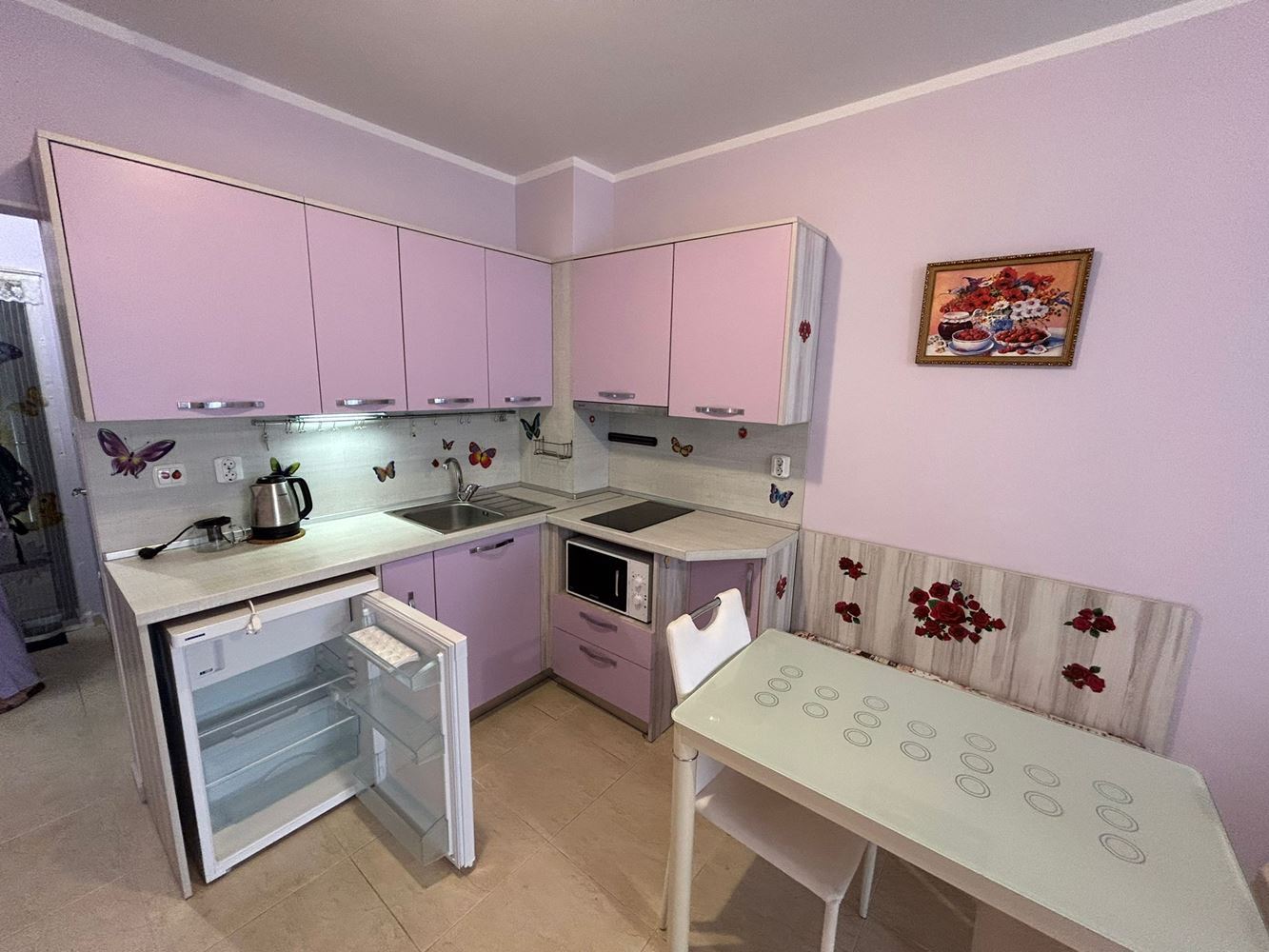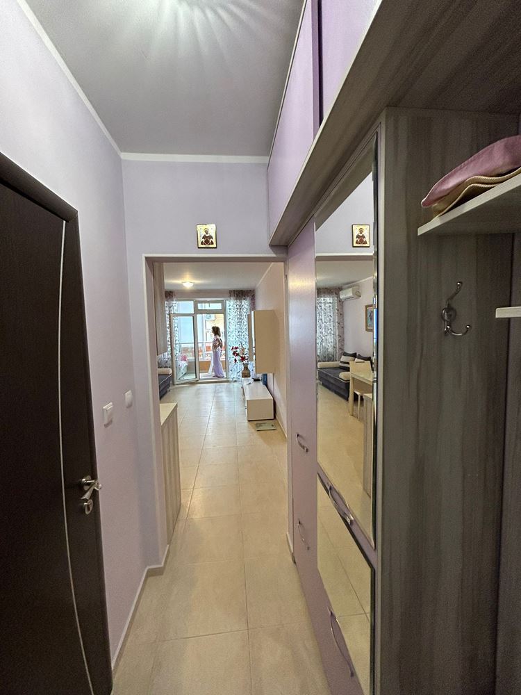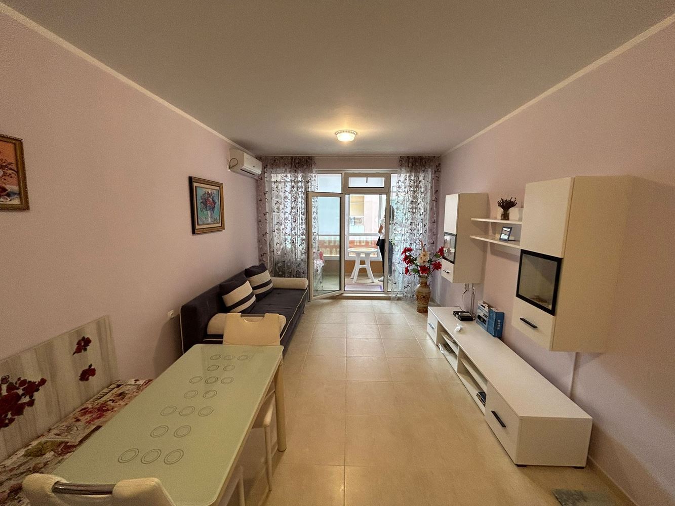 Studio for year-round living in Pomorie is located in a newly built residential building. First floor of a five-storey building, 42 m2 with a rather comfortable layout. Balcony, room and kitchen are equipped with furniture. Bathroom with boiler, there is a washing machine and kitchen appliances. The house is located in a beautiful and convenient area - next to a green area, 200 m from the sea shore with fine sand. Nearby is the highway that connects the town with other resorts on the coast. The central part of Pomorie is within walking distance. In the quarter there is a pharmacy and a polyclinic, a bank, several stores, and closer to the coast - seasonal resort entertainment for children and adults.
