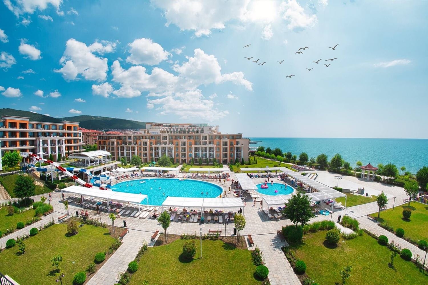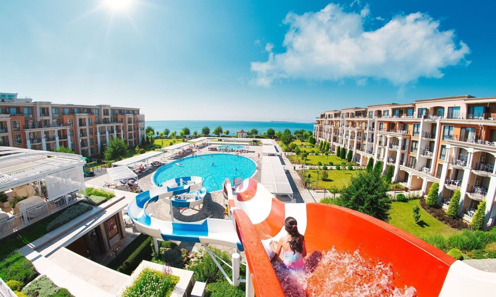 Amenities include large swimming pools with adjoining relaxation areas. For the younger members of the family, there are playgrounds, two waterslides, an outdoor gym, table tennis, a shuttle bus to the complex with tennis courts, a wellness area, a hair salon, a beauty salon, massages and shops. Information on various excursions can be found at the 24-hour reception. The complex is fenced and guarded all year round, ensuring your peace of mind and safety. This is a place where everyone can find their harmony and enjoy carefree days by the seaside.