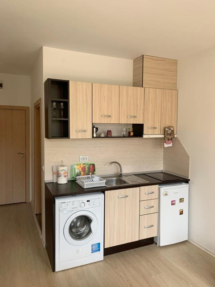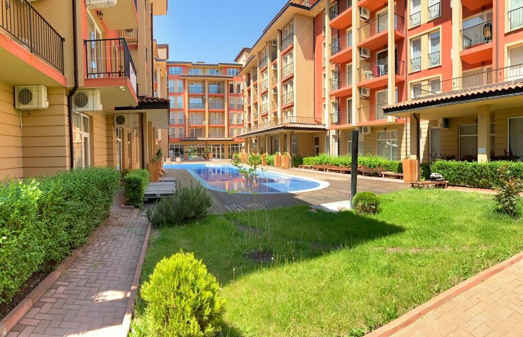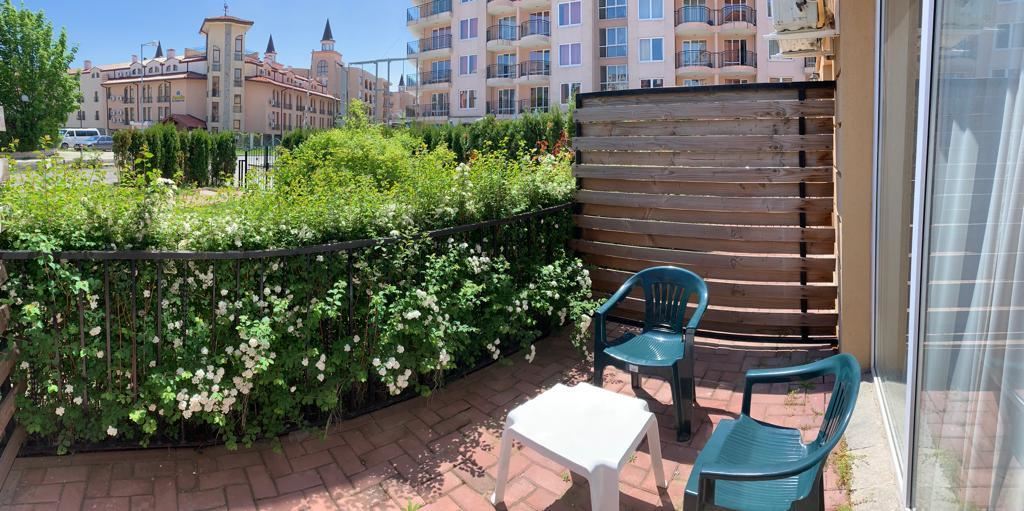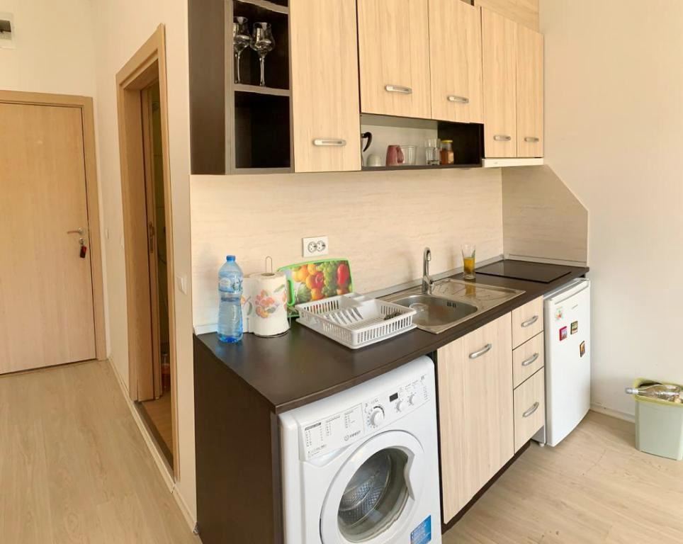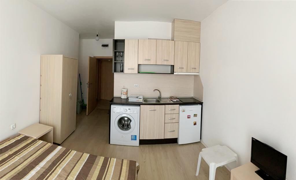 Studio in a central location, in an excellent complex in the prestigious resort of Sunny Beach. The residential complex is located 400 meters away from Cacao Beach. The size of the flat is 36 m2 and it is located on the lowest ground floor. There is a lift in the building. The flat is being sold fully furnished and equipped; all in good condition. It consists of a living room with open-plan kitchen, bathroom with WC. The entire infrastructure is nearby and within walking distance of the complex there is a vegetable market, several supermarkets, restaurants, cafes, water park, bus stop and much more. The flat is ideal for summer holidays and is perfect for renting. The complex is open all year round.