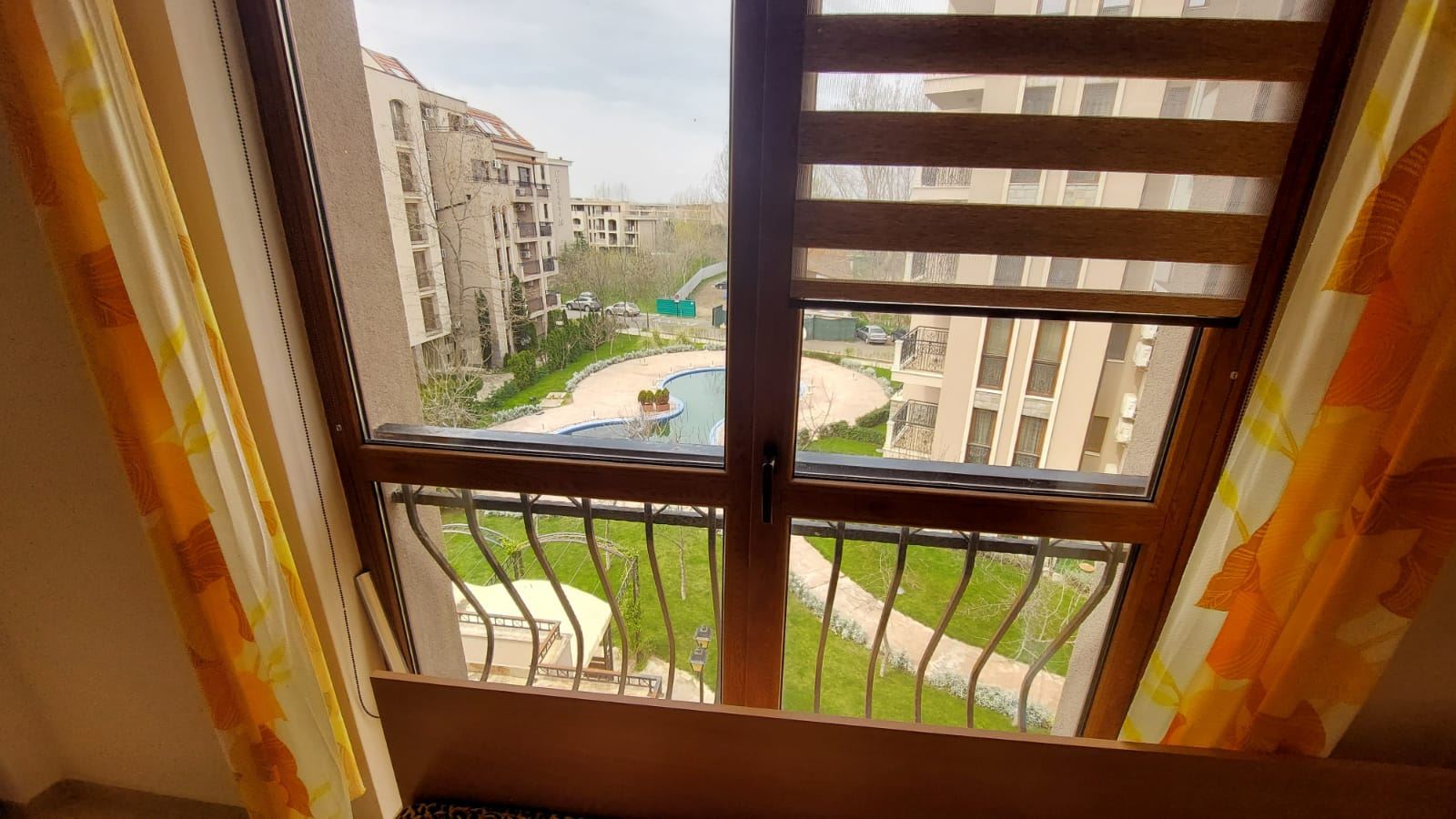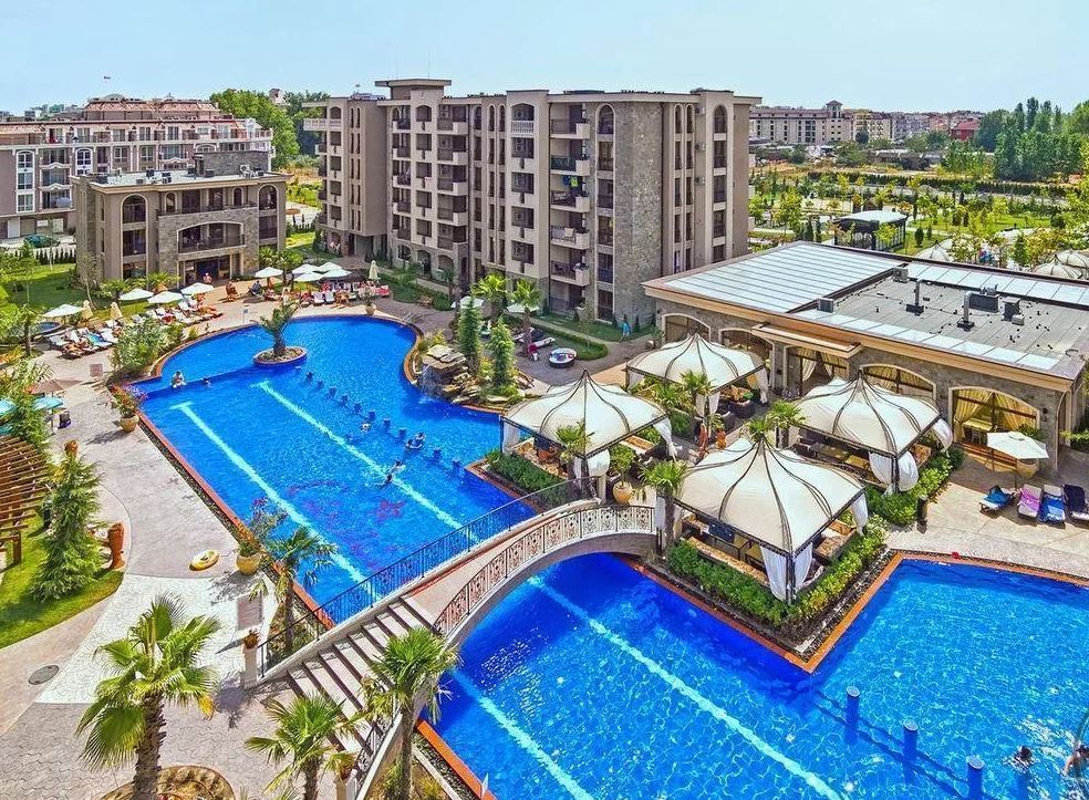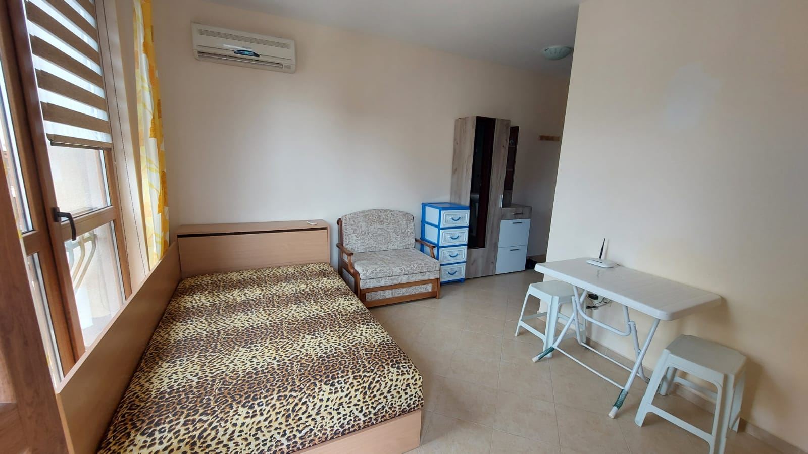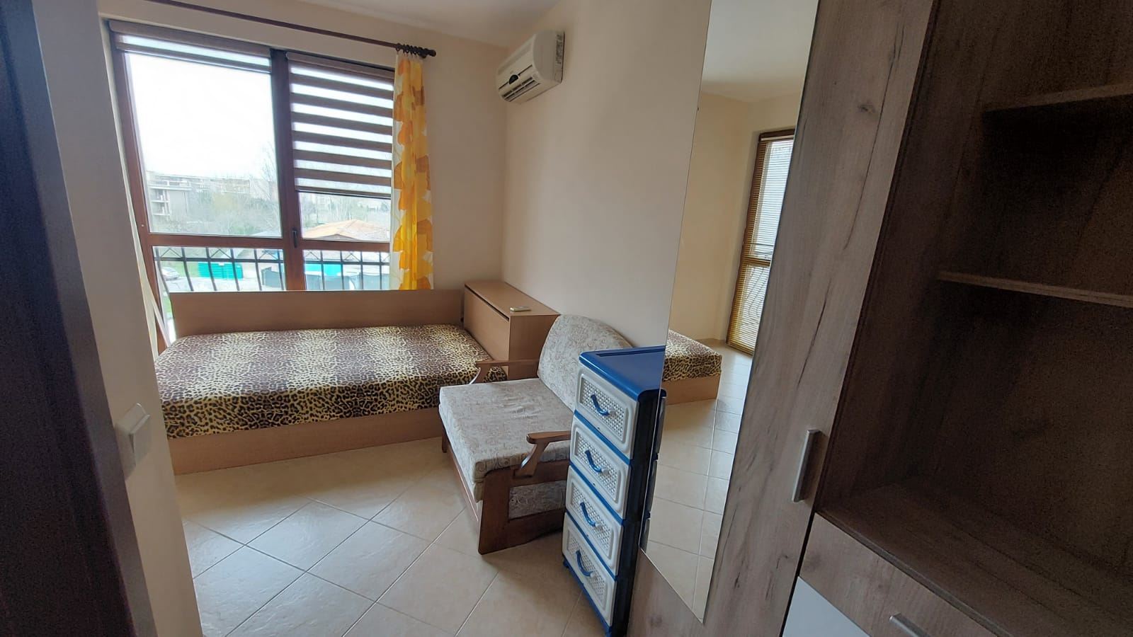 Studio type studio in a luxury complex located in the resort of Sunny Beach, 100 metres from the Aqua Park and 500 metres from the sea. The advantage of living in this complex is the access to the entertainment and facilities that are offered in the vast grounds. Residents are offered two large children's aqua parks, fitness centre, restaurant with a variety of cuisine, bar, supermarket, cinema under the stars in the open air, wellness centre with Jacuzzi, beauty salon, massage, sauna, 9 large swimming pools, playground with animator, ample parking, security and quality service. The flat is on the fourth floor, fully equipped and ready to move in.