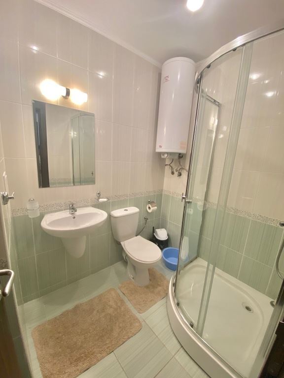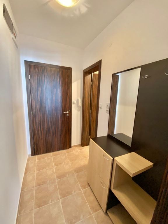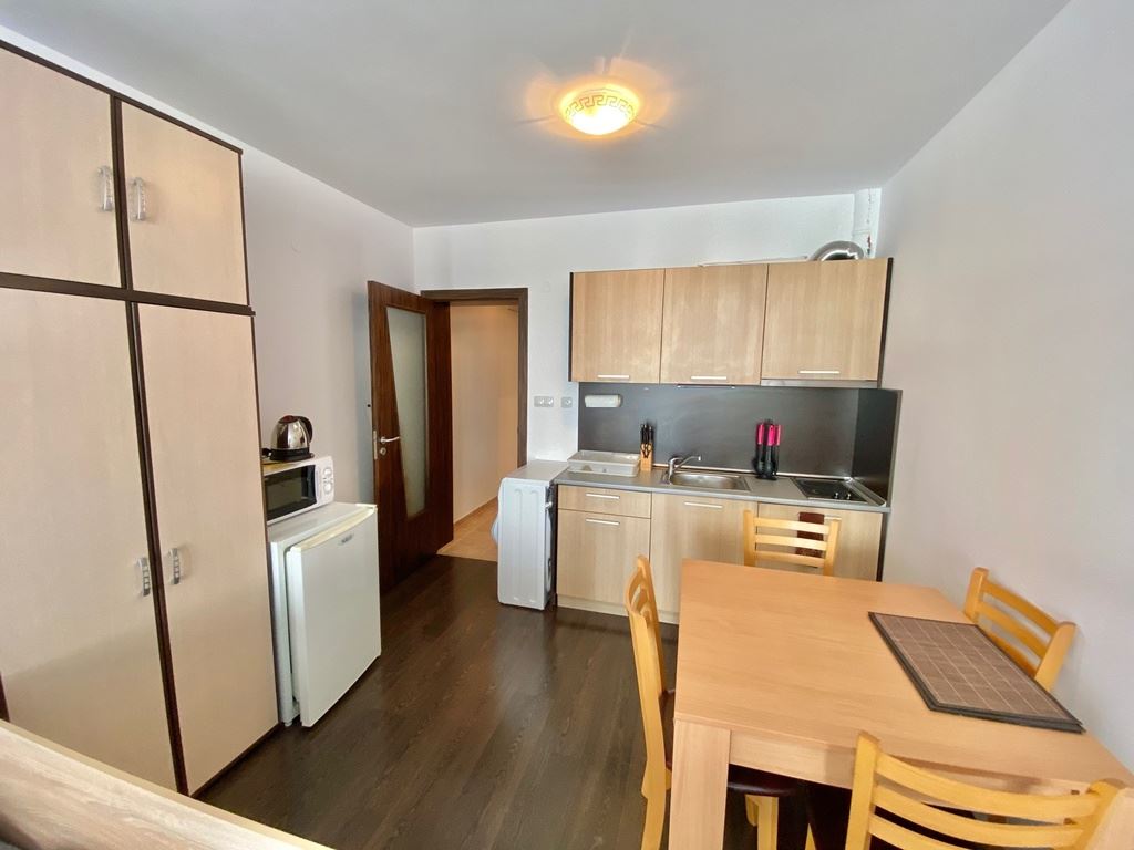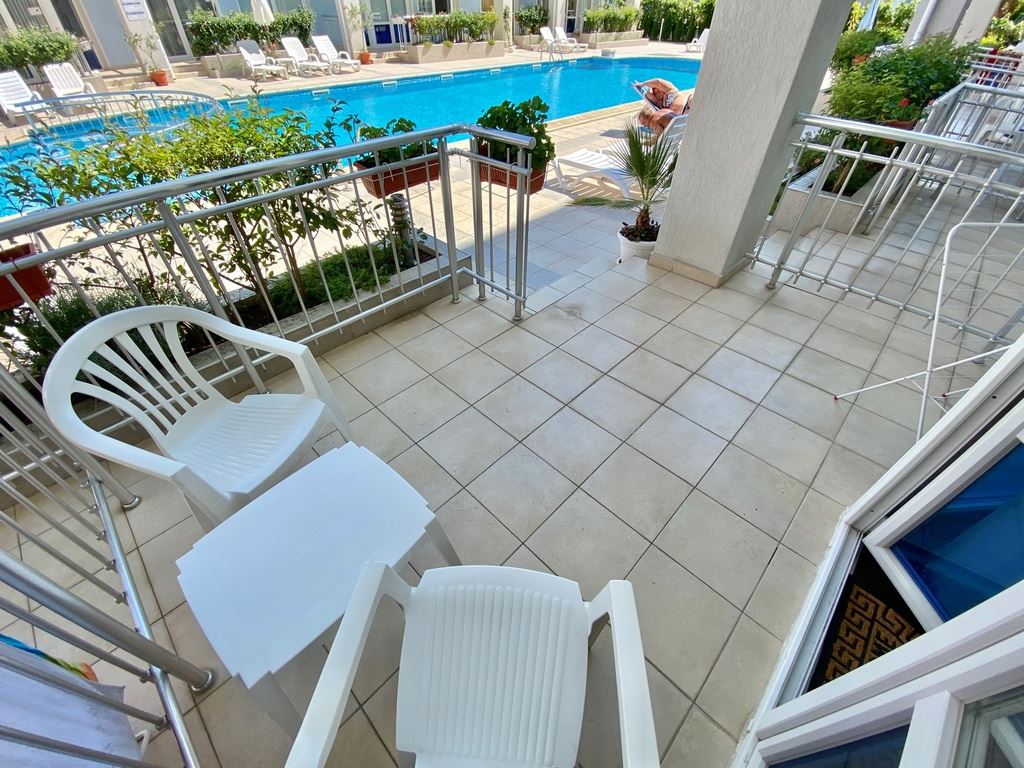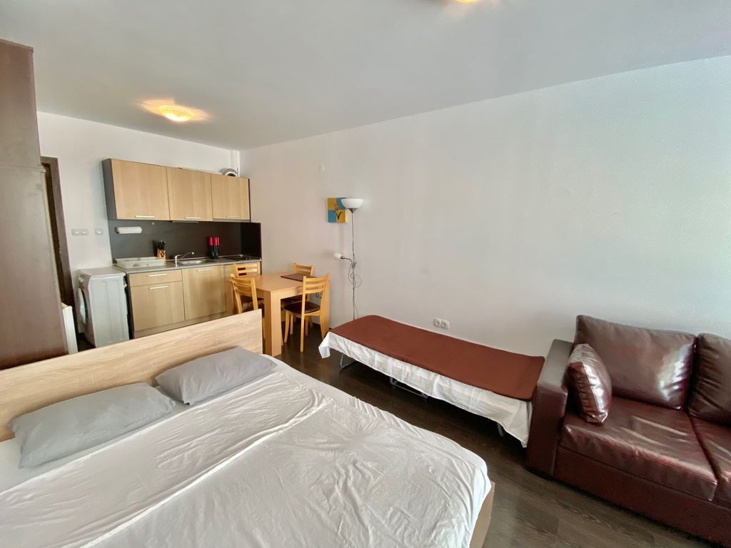 A spacious studio flat in a new development located in the resort of Sunny Beach. The studio is located on the ground (ground floor) and has a total living area of 50 m2. It consists of an entrance hall, living room with kitchen area, bathroom with shower unit and a big veranda with access to the inner yard and pool. The flat faces East. The property is sold furnished and equipped with air conditioning. The complex is located near the centre of the resort. Nearby are the shops, the most popular restaurant, cafeterias and other amenities. The sea and the beach are about 400 m away. The complex offers all the necessary conditions for both summer holidays, and for a comfortable permanent residence all year round, commissioned in 2012.