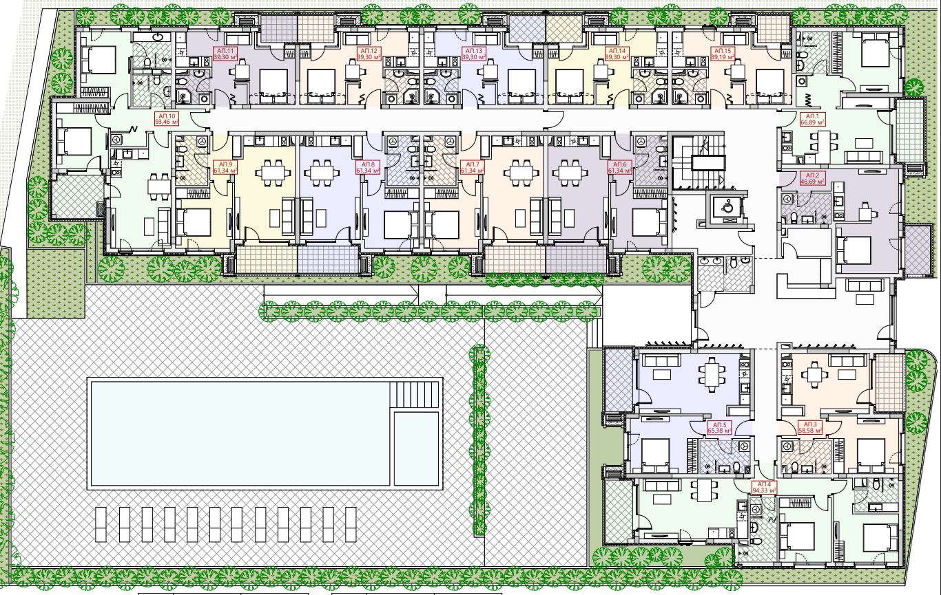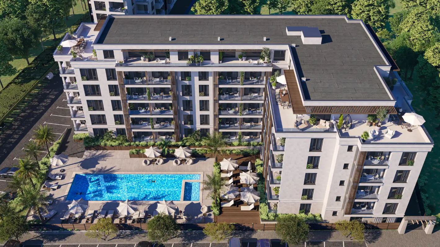 The complex in which the studio is located consists of two 5-story buildings and two detached 3-story townhouses offering a unique mix of amenities. Located just 700 metres from golden beaches and 500 metres from the largest water park in Bulgaria, this project combines the benefits of a quiet and peaceful environment with proximity to the attractions and amenities of the city.