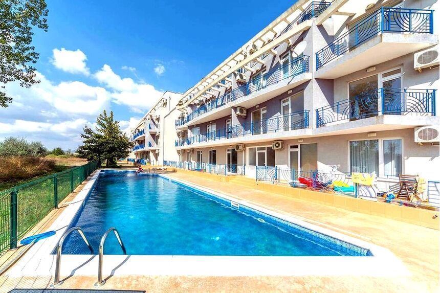 Studio a small family housing complex in Sunny Beach. The area is planted with rich green vegetation, so you can enjoy fresh and clean air. The complex is within walking distance to the centre of the resort and the most popular beach Cacao Beach. The complex is equipped with seasonal and children's pools, comfortable gazebo, sunbathing area, pool bar, shop, parking, security and constant video surveillance. From the 33m2 flat you can enjoy the beautiful view of the surrounding nature. The apartment is delivering fully furnished and equipped. Thanks to the solid monolith construction, the complex offers the possibility of living in it all year round.