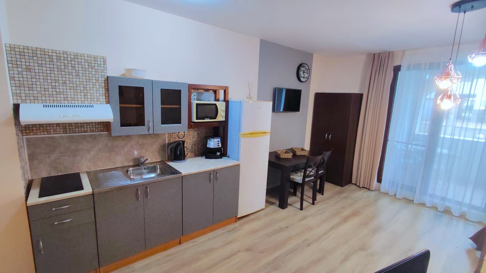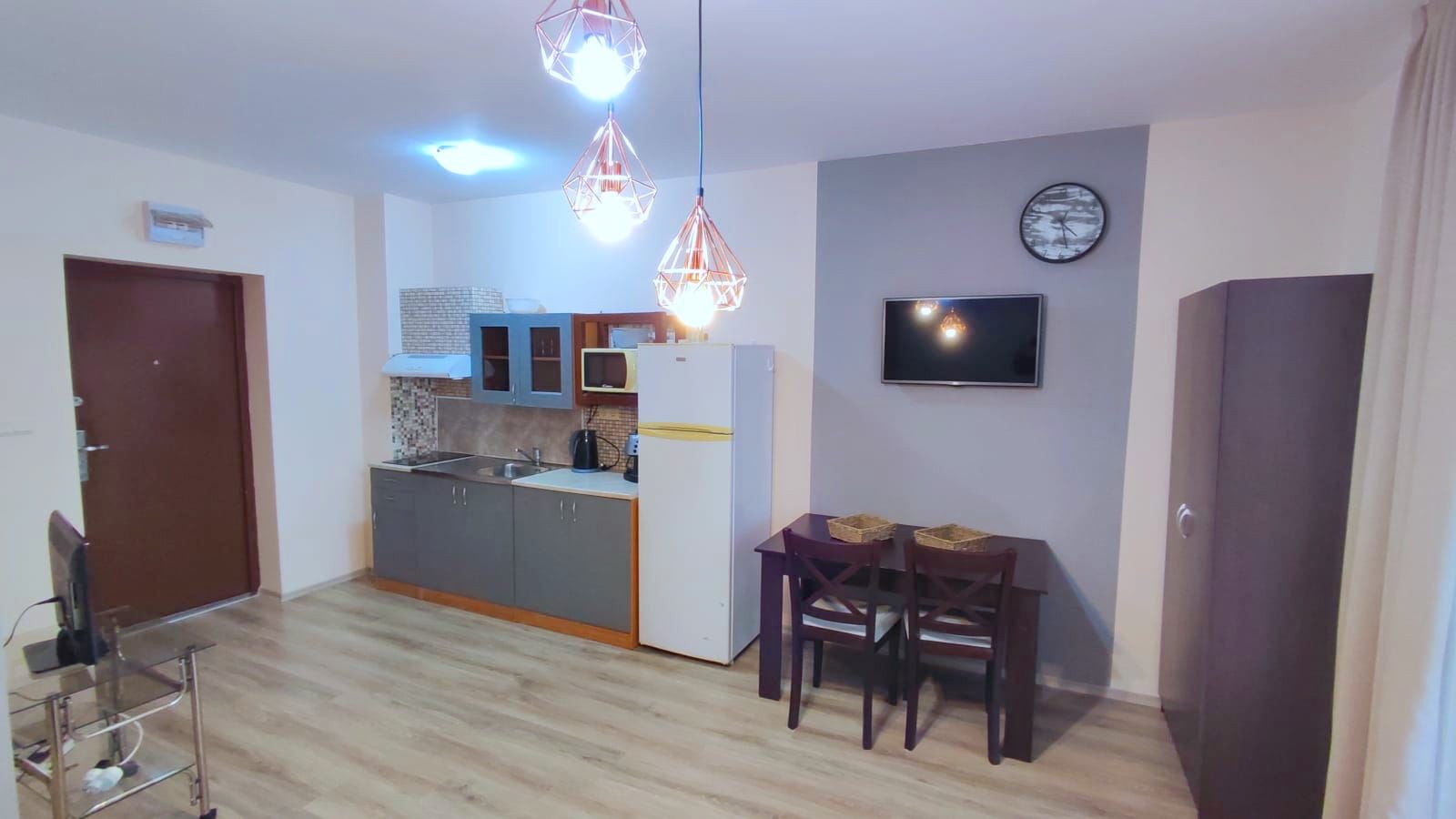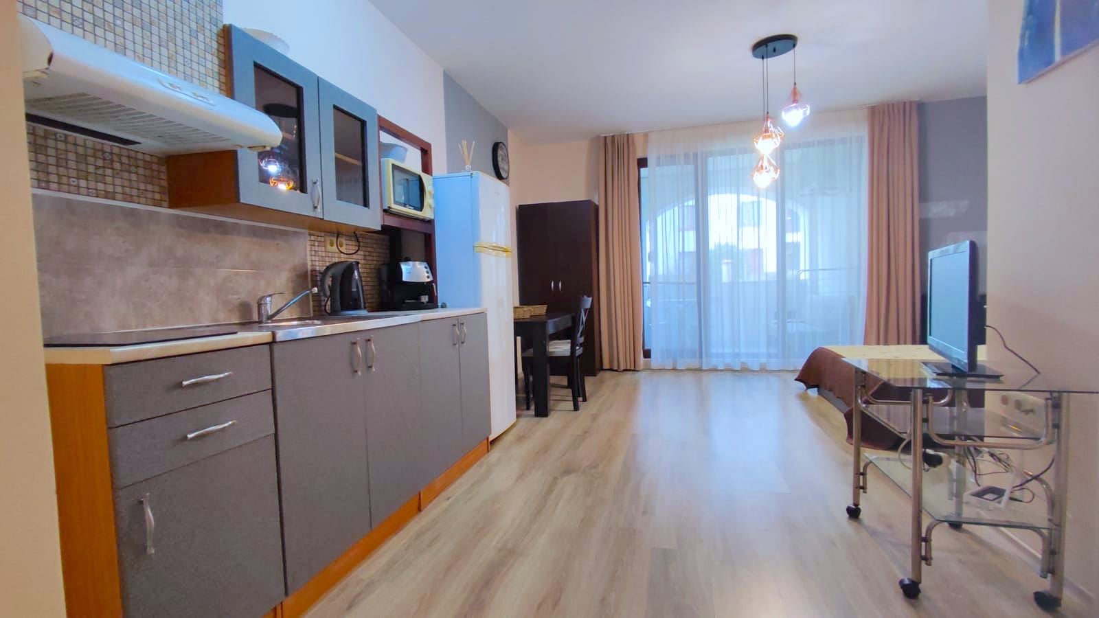 This studio in a complex in Nessebar is an attractive accommodation on the ground floor with an area of 43 square metres. The location on the parterre provides easy access and views of the complex, which may be particularly attractive for residents who value proximity to public areas and amenities. The studio is in immaculate condition, with quality renovations that add an element of modernity and style. This makes it ready for immediate occupation or renting out, offering a variety of uses from personal accommodation to investment purposes. The sale includes all necessary furniture and appliances, making the moving process easy and convenient for the new owners. It also makes it attractive to those who are considering the purchase as an investment intended for renting out later. The overall view of the property can add to the atmosphere of tranquillity and comfort and create a pleasant living environment. This property is a good combination of convenience, style and potential for future income.