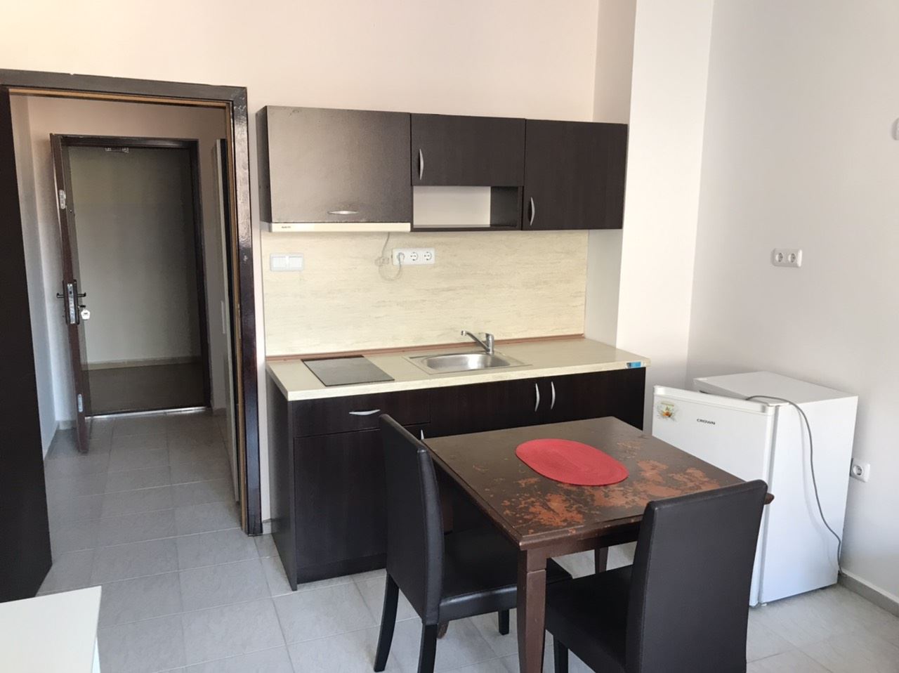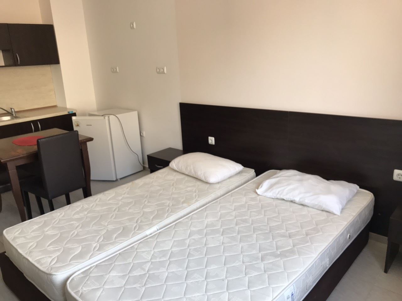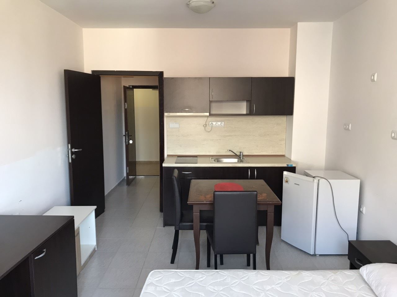 Studio in the resort town of Pomorie. The spa resort of Pomorie is often chosen not only for summer holidays but also for permanent living all year round. The favorable sea climate, sandy and gently sloping beaches with safe bathing, the local infrastructure and the closeness to the regional centre and the international airport have made Pomorie a preferred place of comfortable and relaxing living for thousands of Russians and non-Russians. The residential building is located in the developed part of the town only 100m away from the sea and the beach. The promenade, supermarket, café-candy shop, various shops, restaurants, bars and other objects of urban and resort infrastructure are situated at a walking distance. The 33 m2 studio is located on the fourth floor and consists of a living room with kitchenette and bathroom, without a balcony.