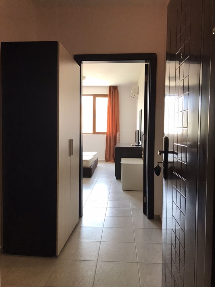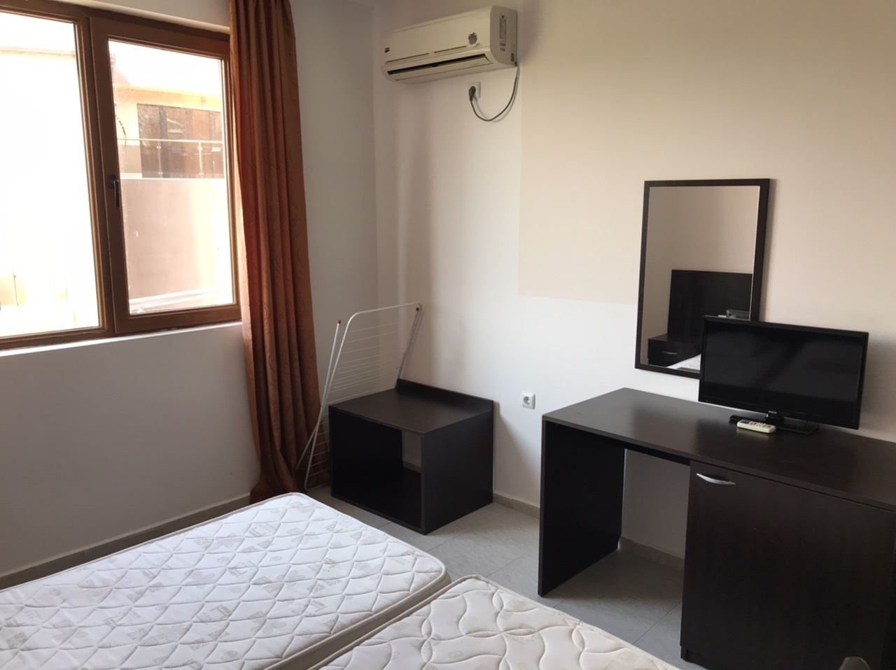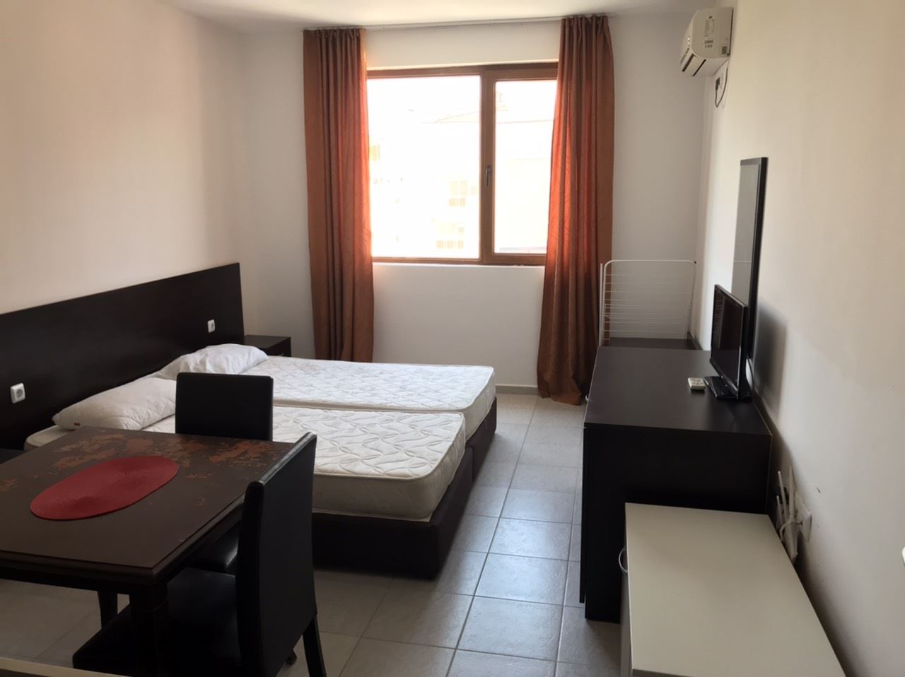 Studio in the resort town of Pomorie. The spa resort of Pomorie is often chosen not only for summer holidays but also for permanent living all year round. The favorable sea climate, sandy and gently sloping beaches with safe bathing, the local infrastructure and the closeness to the regional centre and the international airport have made Pomorie a preferred place of comfortable and relaxing living for thousands of Russians and non-Russians. The residential building is located in the developed part of the town only 100m away from the sea and the beach. The promenade, supermarket, café-candy shop, various shops, restaurants, bars and other objects of urban and resort infrastructure are situated at a walking distance. The 33 m2 studio is located on the fourth floor and consists of a living room with kitchenette and bathroom, without a balcony.