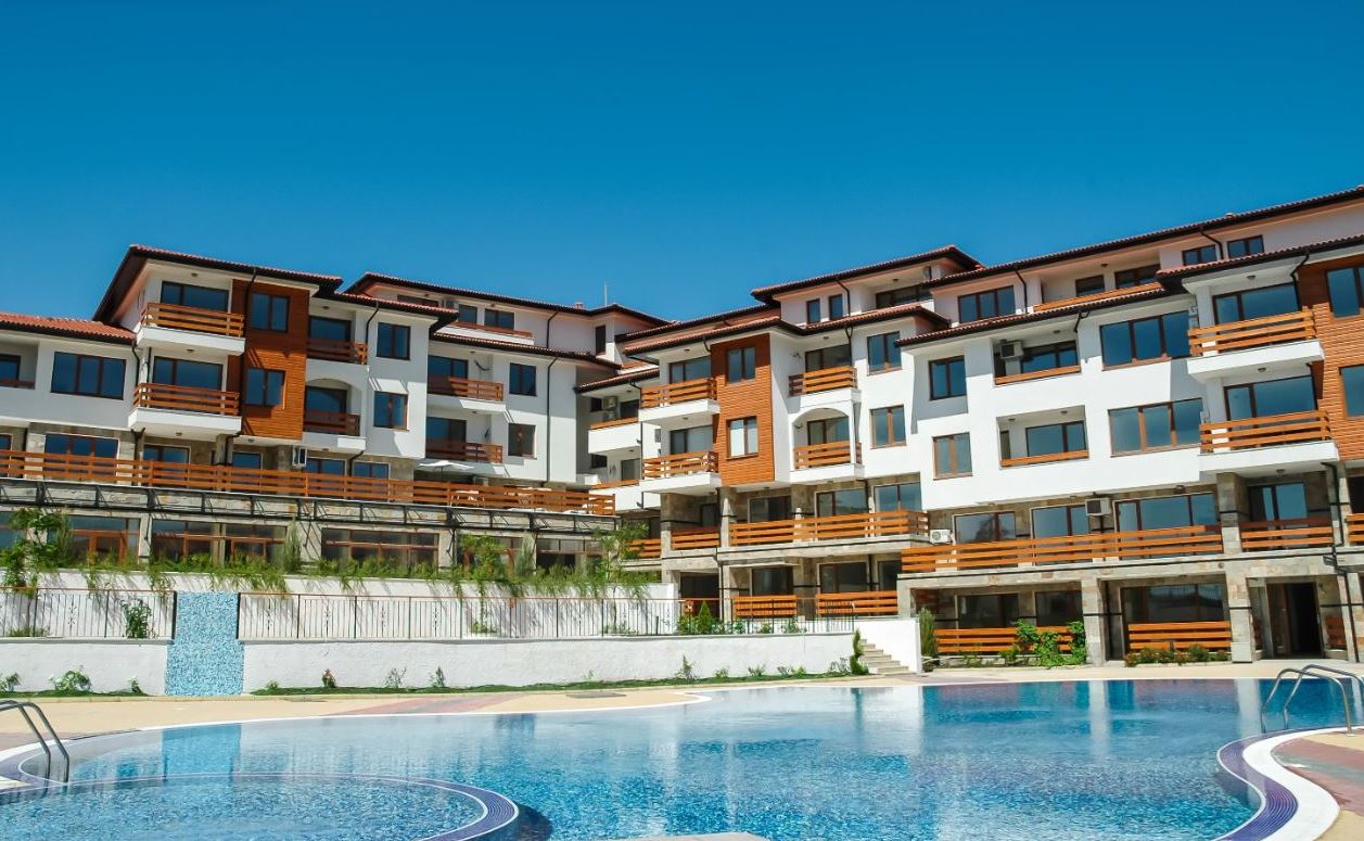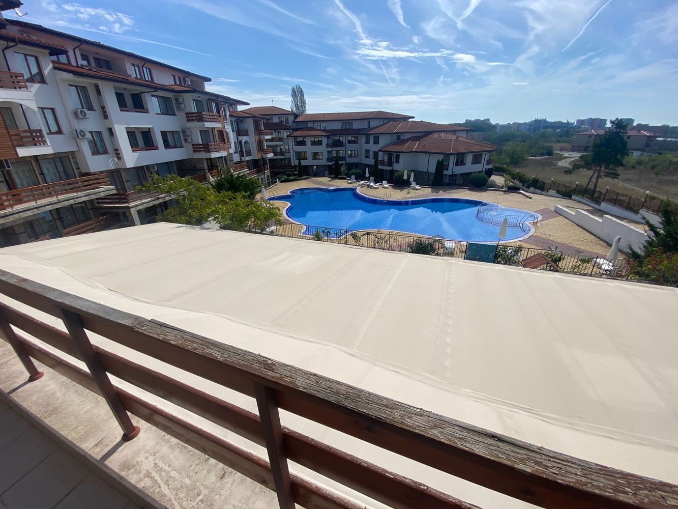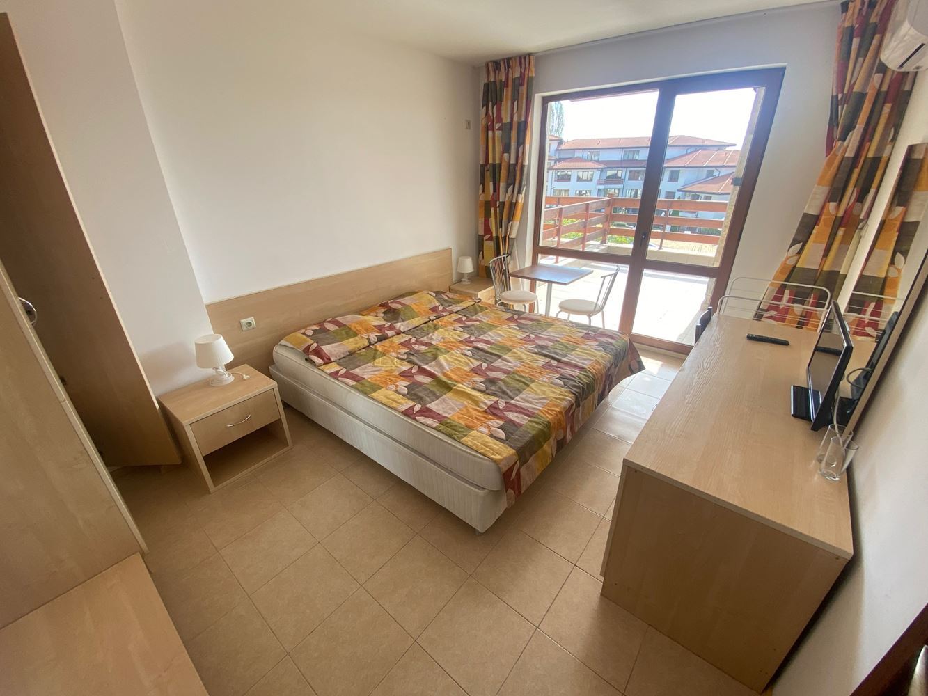 We offer a cosy studio with pool view in a picturesque complex, which is located at the foot of the Stara Planina mountain at a short distance from the sea shore. This area is characterised by beautiful green slopes, marvellous sea panorama and a feeling of peace and tranquility. The architecture of the complex is made in a special traditional Bulgarian style, which distinguishes it from the rest of modern construction, which creates a pleasant feeling of authenticity and harmony with the surrounding nature. The complex has a restaurant, swimming pool, children's corner, recreation areas, barbecue, security, parking. The studio with a total area of 27 m2 is located on the ground floor. It consists of a living room with kitchenette and sleeping area, a bathroom and a large terrace overlooking the beautiful swimming pool. The accommodation is fully equipped with furniture and appliances. The complex is located in a picturesque area at the foot of the Stara Planina mountain, which allows you to enjoy beautiful green slopes and sea views. It is an ideal place for lovers of nature and relaxing holidays.