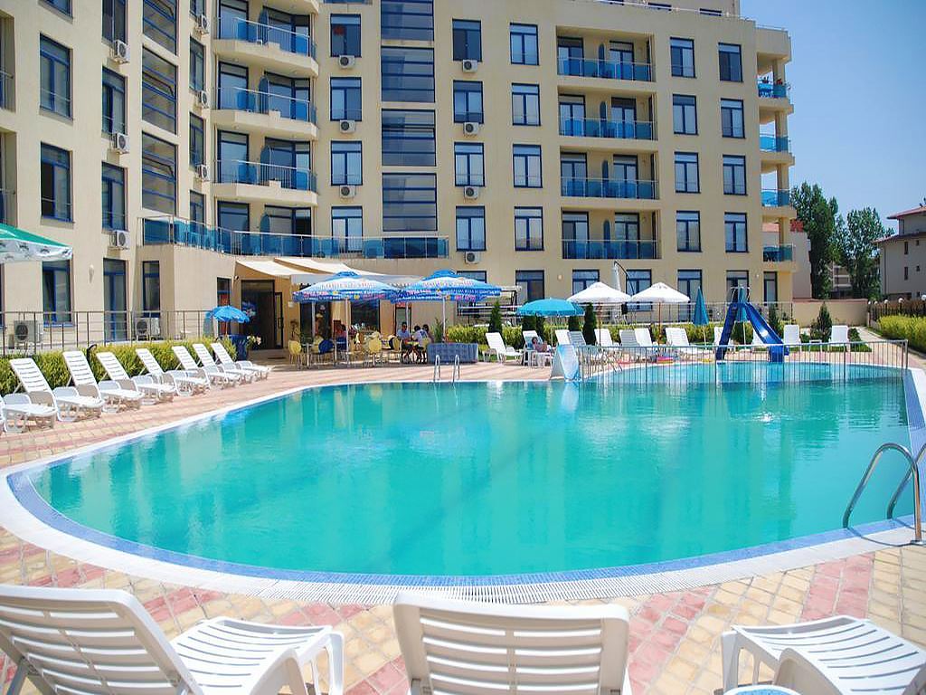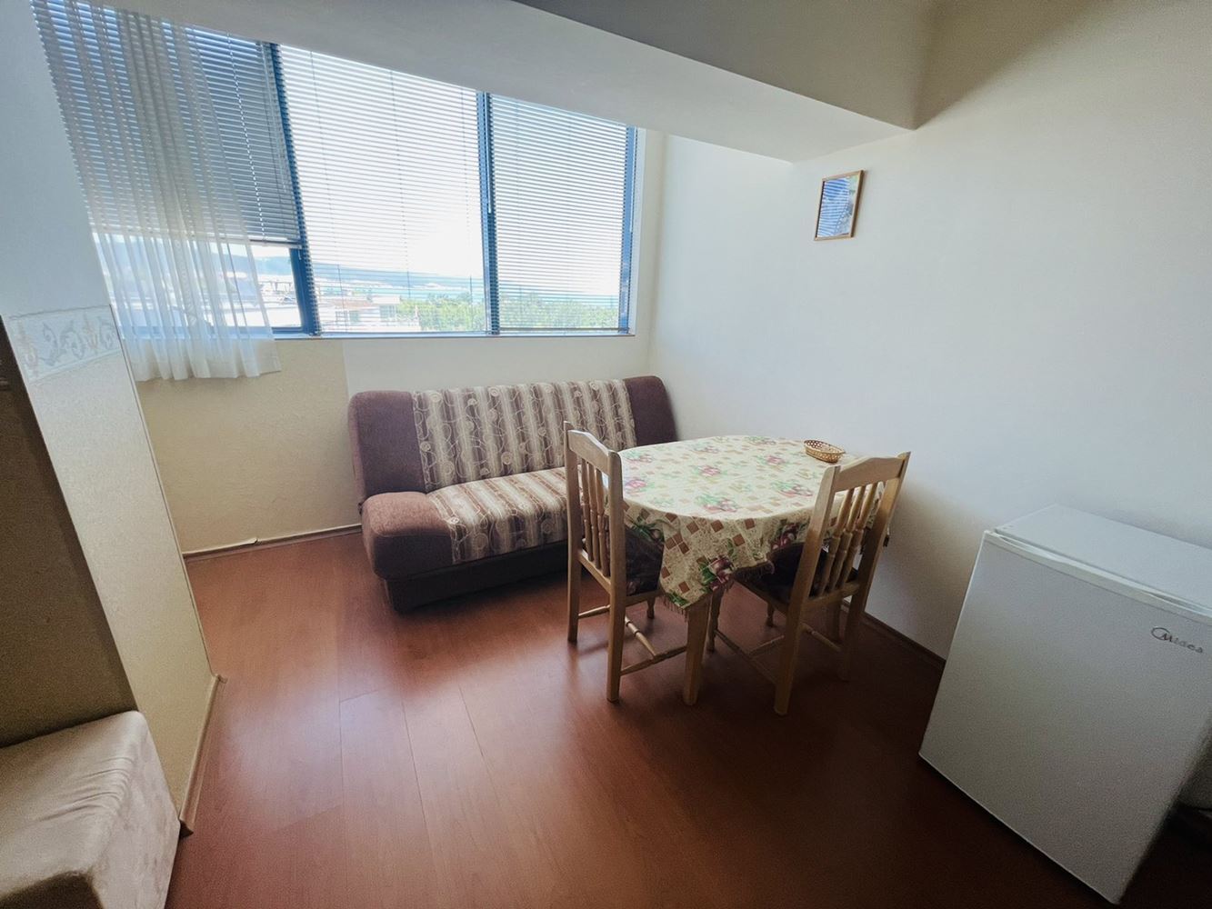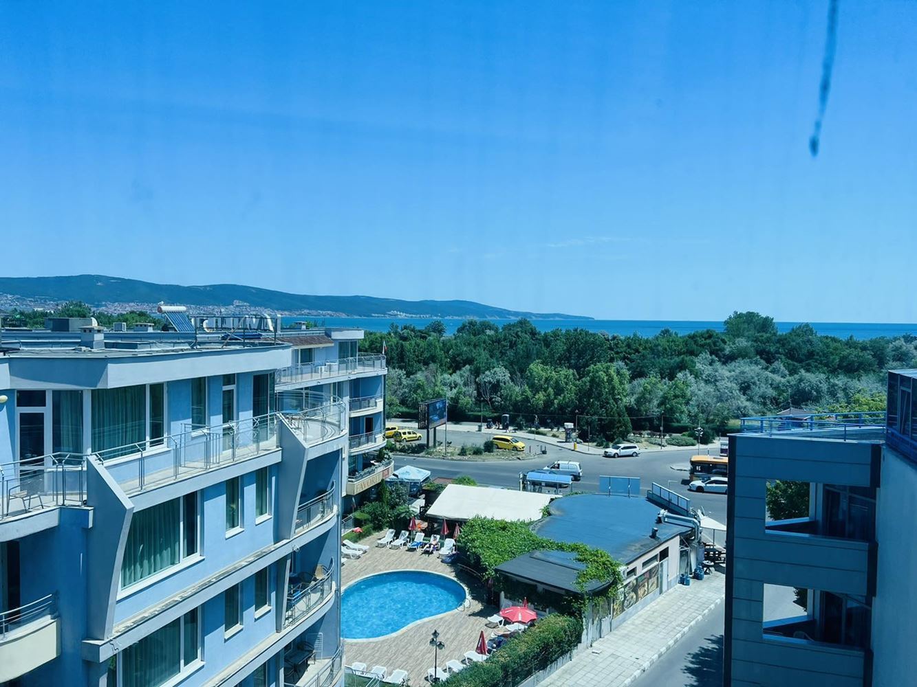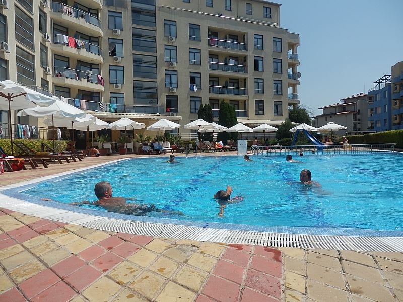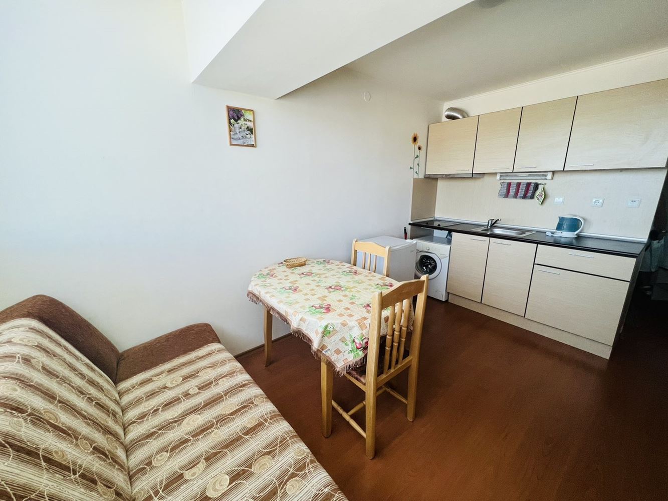 Comfortable spacious studio flat in a complex located in Sunny Beach. The complex is located 200 metres from the coast, a five to six minute walk to all infrastructure. The flat is fully furnished and equipped. The complex is well equipped, guarded and monitored all year round. The large complex has a swimming pool, children's pool with waterslide, lobby bar, restaurant, barbecue area, sauna, fitness area with fitness equipment, playground, golf area, shops, pharmacy. The flat has a living area of 35.98 m2 on the fifth penultimate floor. The bathroom is fully equipped with all necessary sanitary fittings. The flat is equipped with air conditioning.