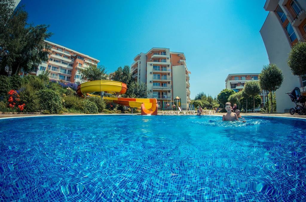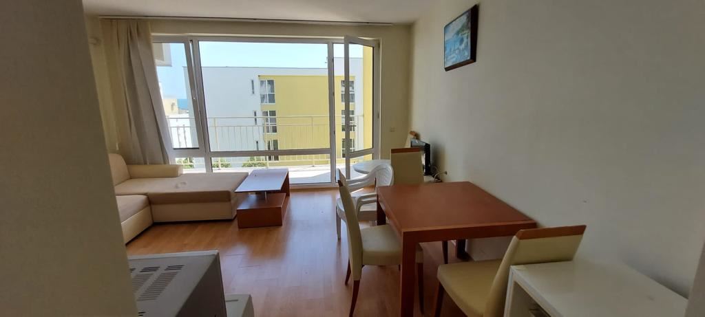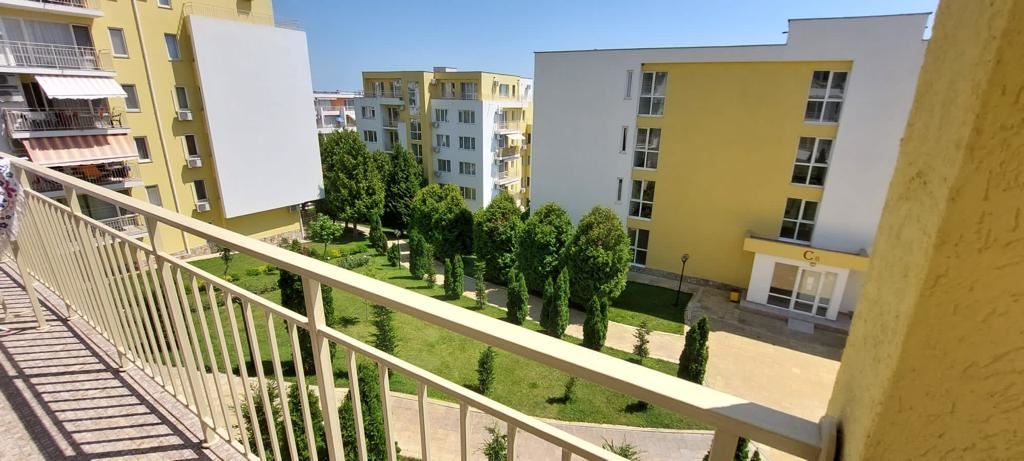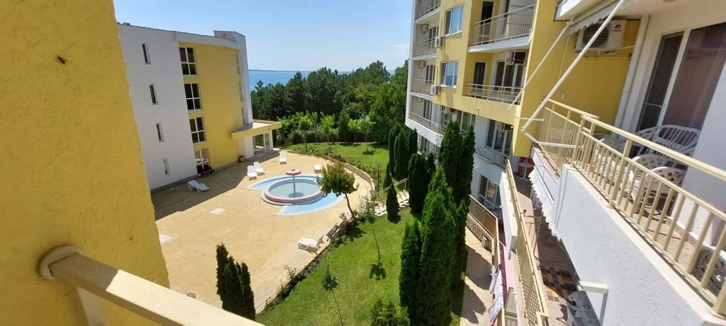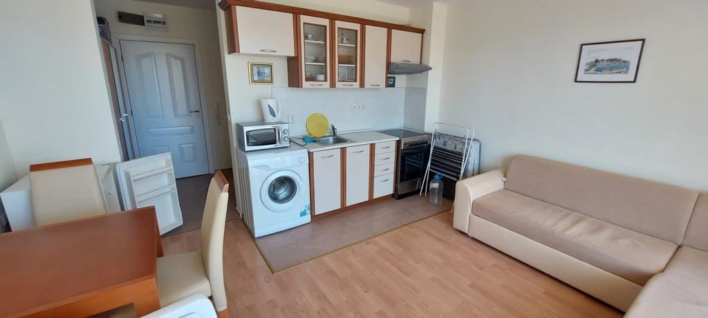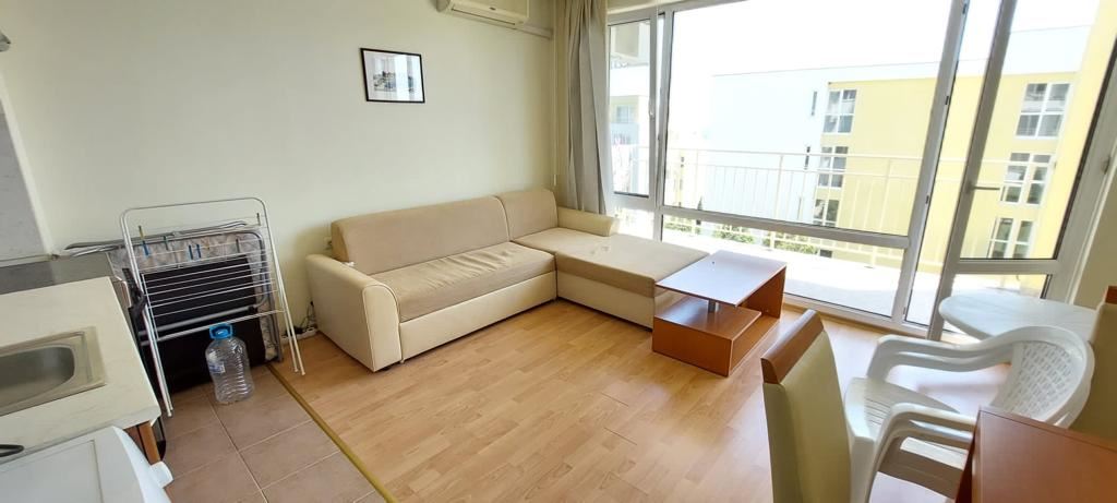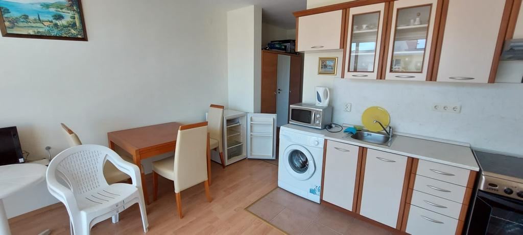A studio in a lovely complex at the foot of the Balkan Mountains, with excellent views of the sea, Sunny Beach and Nessebar. The flats in this complex are suitable for all year round living. The complex has the best infrastructure on the coast, allowing to combine various active and relaxing holiday. The offered flat is 36m2 located on the first floor and consists of an entrance hall, a living room with open plan kitchen, a bathroom with shower unit and a balcony with the sea view. The flat is fully furnished and equipped.
