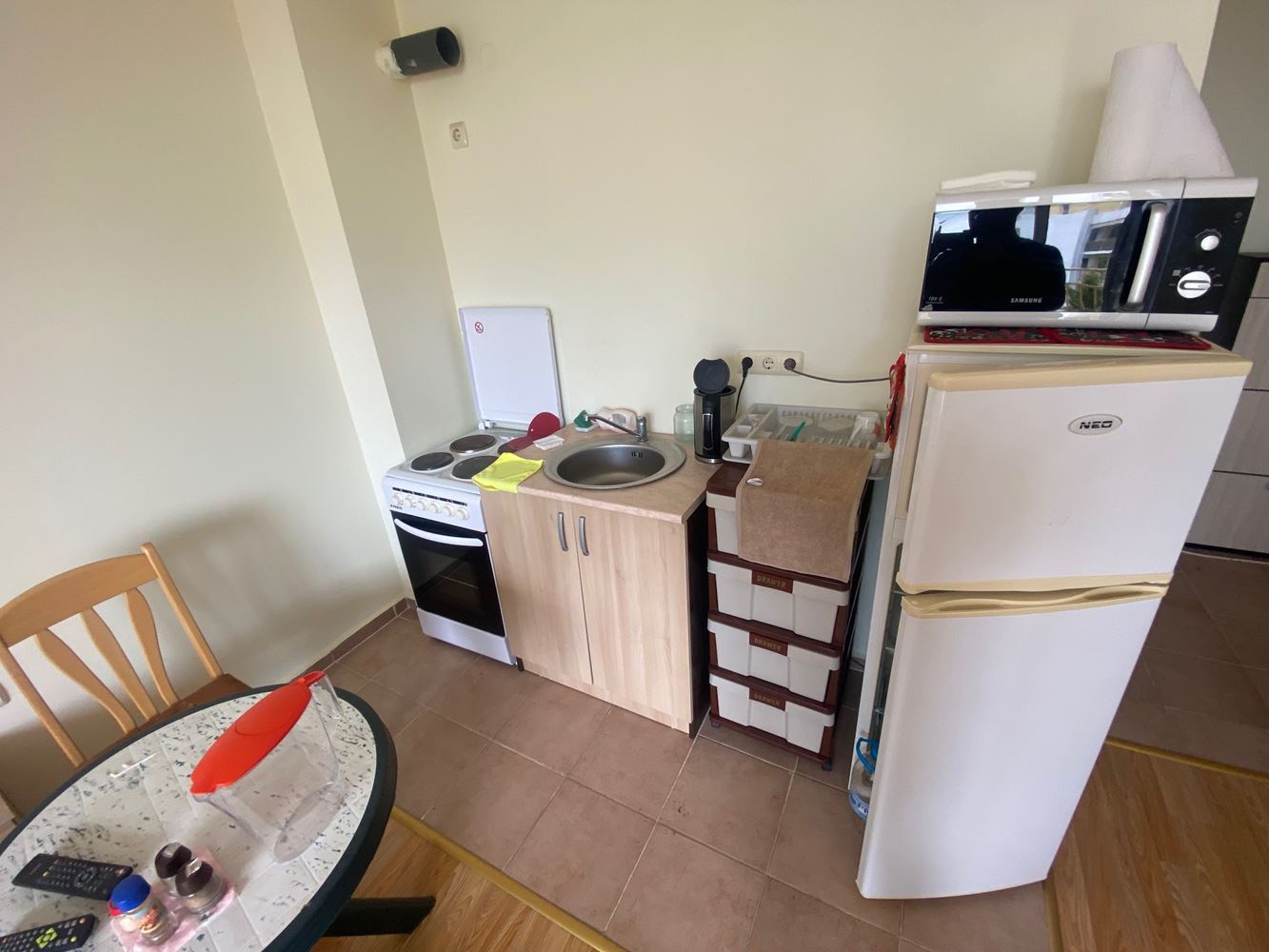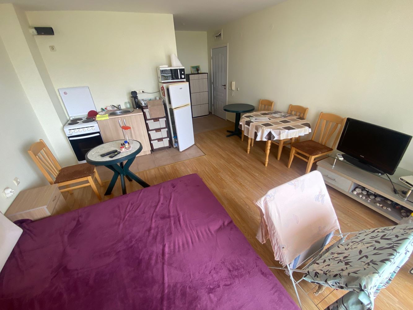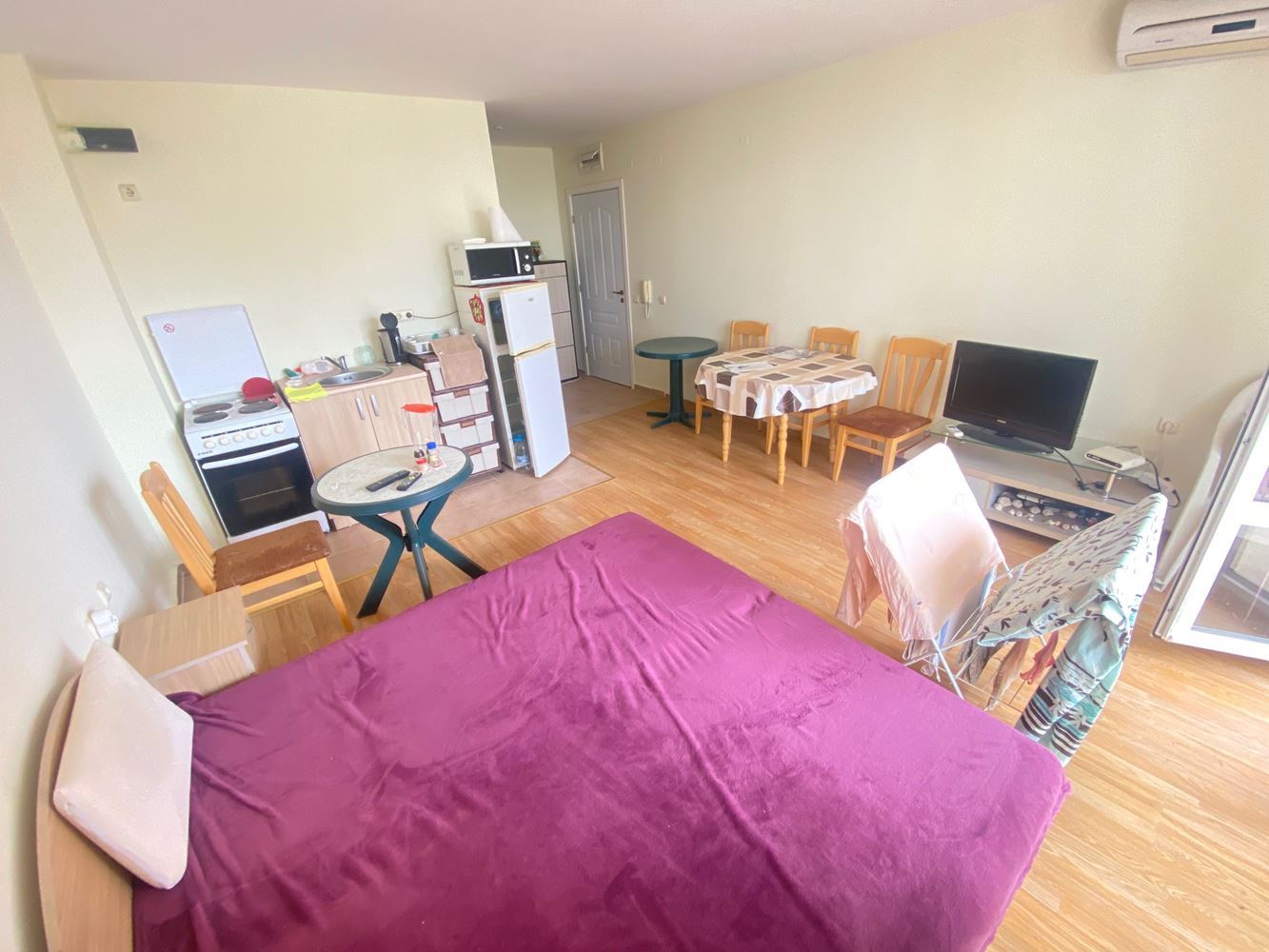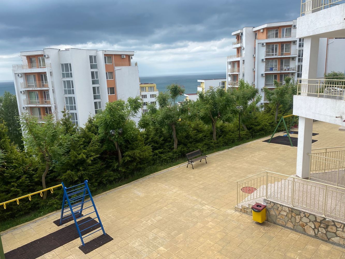 Studio of 42 m2 with a beautiful view of the sea and the landscaped grounds of the complex. The complex has many amenities and services including many swimming pools, playgrounds, restaurants, cafes and shops. The flat is located on the first floor and consists of a spacious bright room, a bathroom and a terrace overlooking the sea and the complex. The studio is fully furnished and equipped and ready to move in. The complex offers well maintained green area with swimming pools, cafes, restaurants, playgrounds, recreation areas, benches, beautiful landscaping. Numerous services and entertainment facilities are at the residents' full disposal.