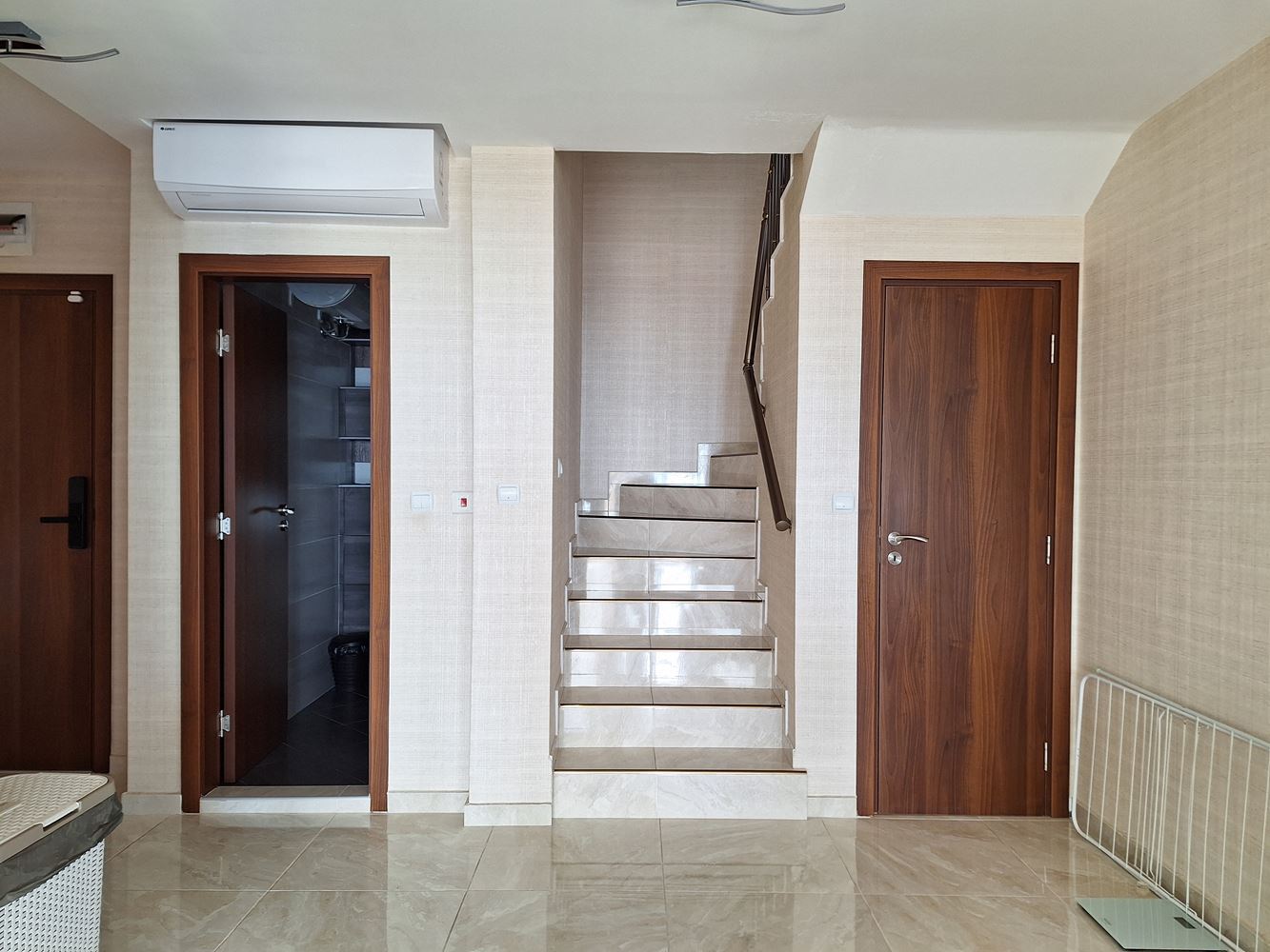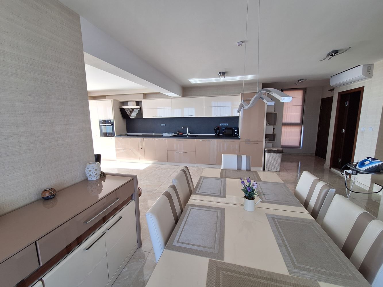 With a total area of 238 sqm, this penthouse is located on the fifth floor and the building is equipped with an elevator for the convenience of the residents. Its layout includes three spacious rooms: