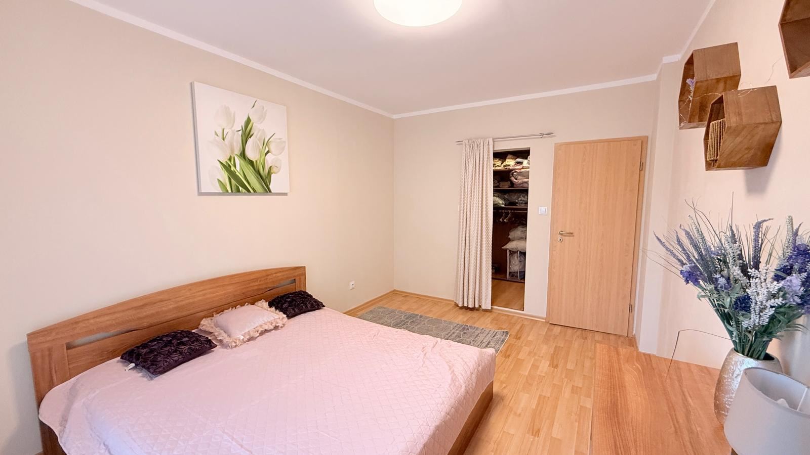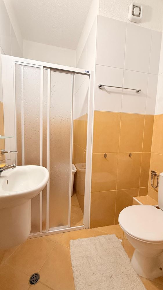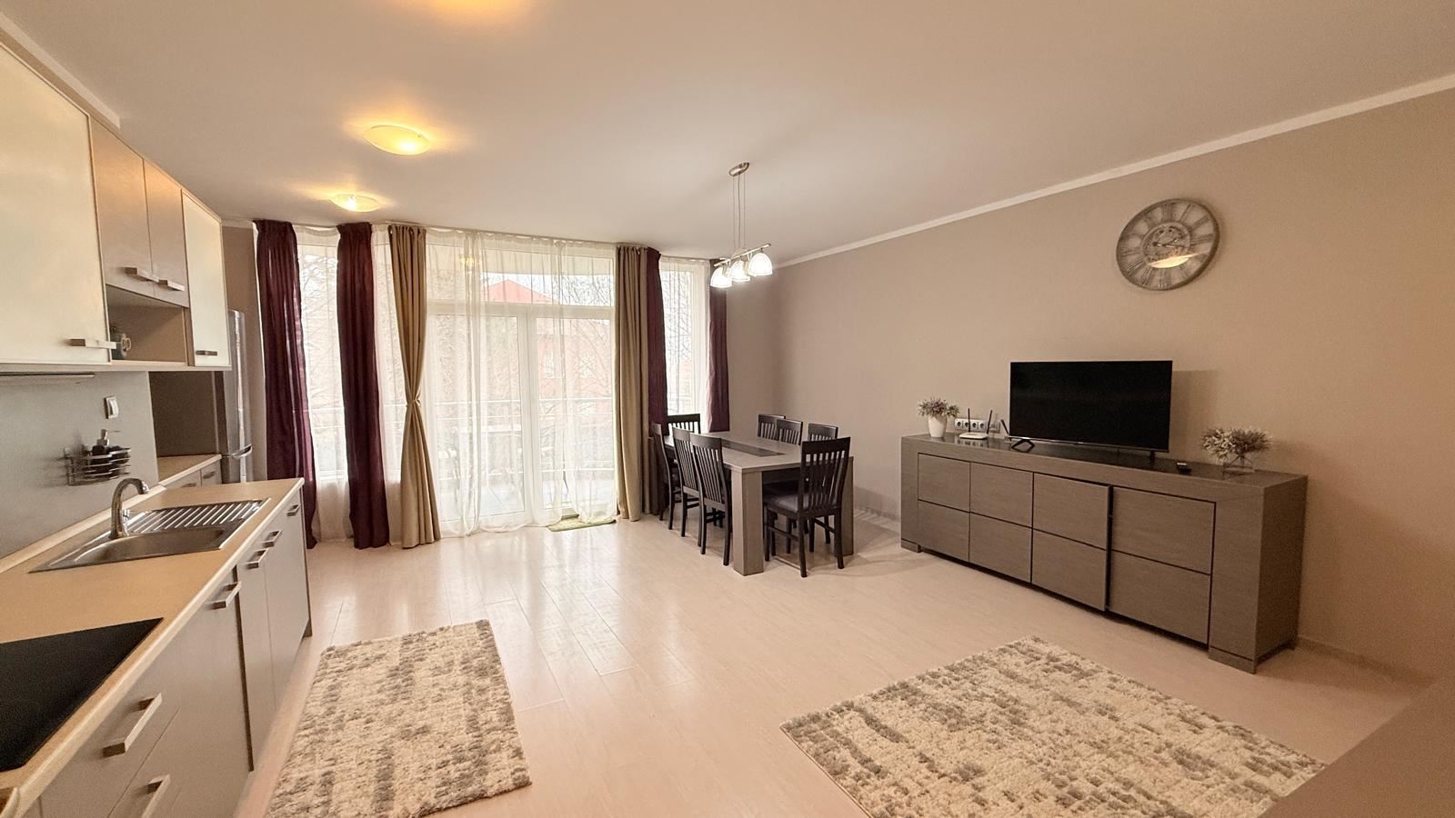 The apartment impresses with a functional and comfortable layout, designed with the needs of a modern family in mind. The spacious living room with kitchen is bright and cozy, featuring a completely new, modern kitchen, equipped with brand-new electrical appliances, as well as stylish furniture selected with attention to detail. From the living room, a beautiful sea view opens up, creating a sense of space and tranquility.