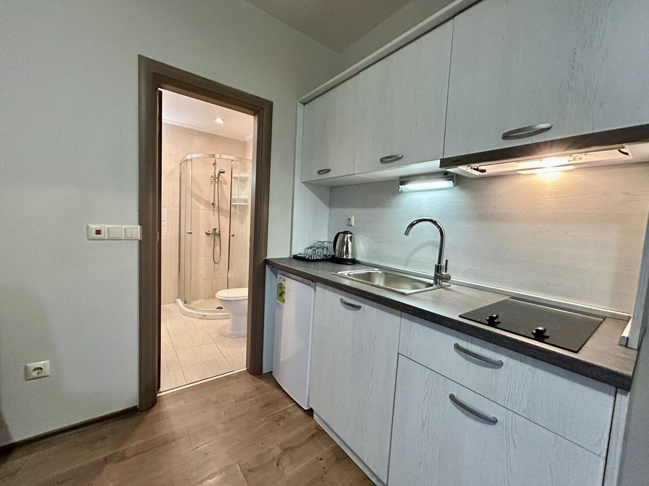 The layout is functional and comfortable: a spacious living room with a fully equipped kitchenette, a bright bedroom, a stylish bathroom with WC, and a convenient entrance corridor.