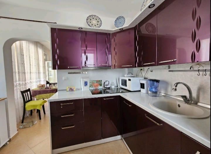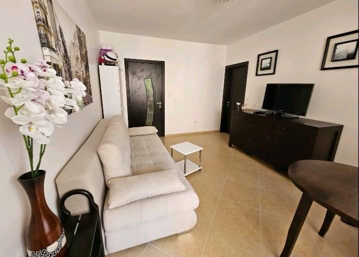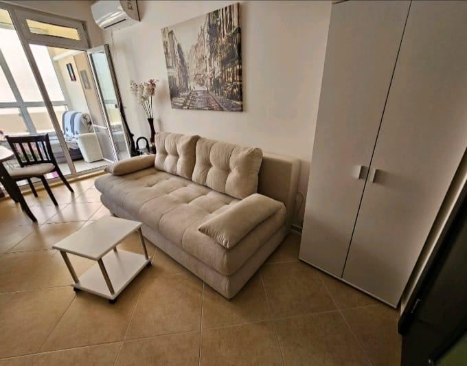 Stylish spacious one bedroom apartment with nice furniture in Pomorie, in walking distance from the sea. The area of the apartment is 70 m2. It is located on the second floor - by local standards the first residential floor, the building has an elevator. The apartment is fully furnished and equipped, ready to move in. Low maintenance fees. The building is close to cafes and restaurants, snack bars and bars, stores, bus stop and other amenities. The sea is only 200 meters away.