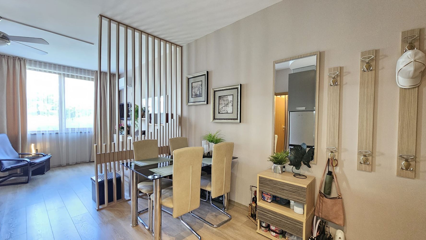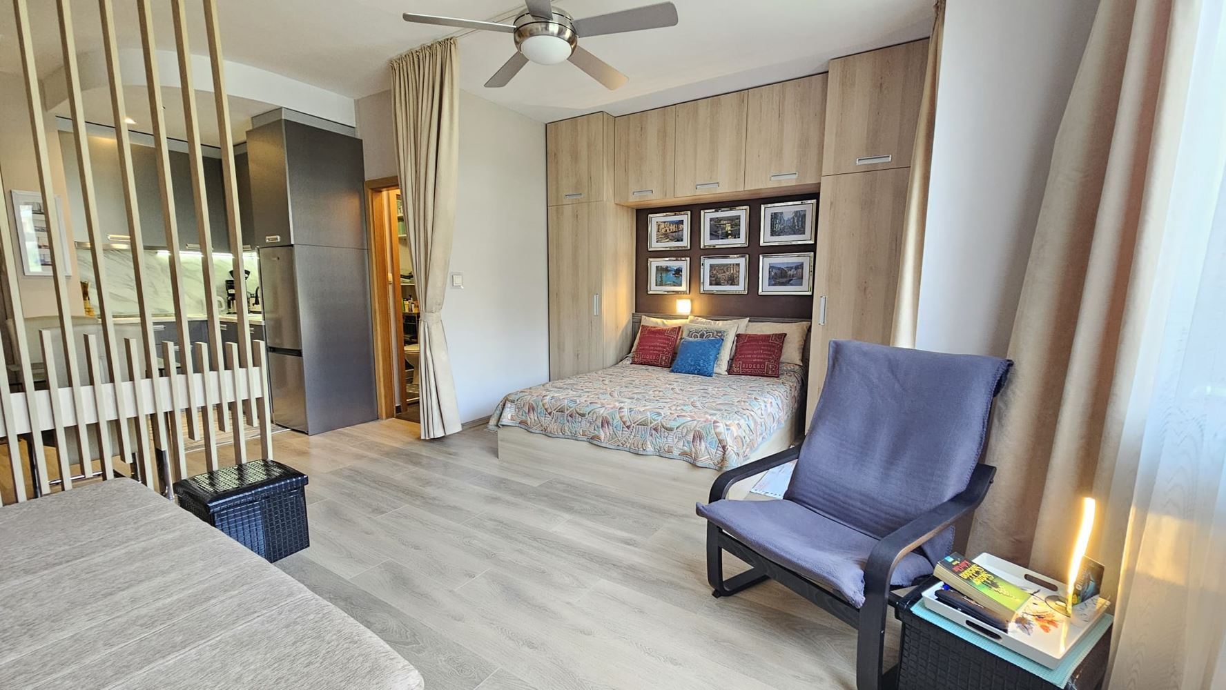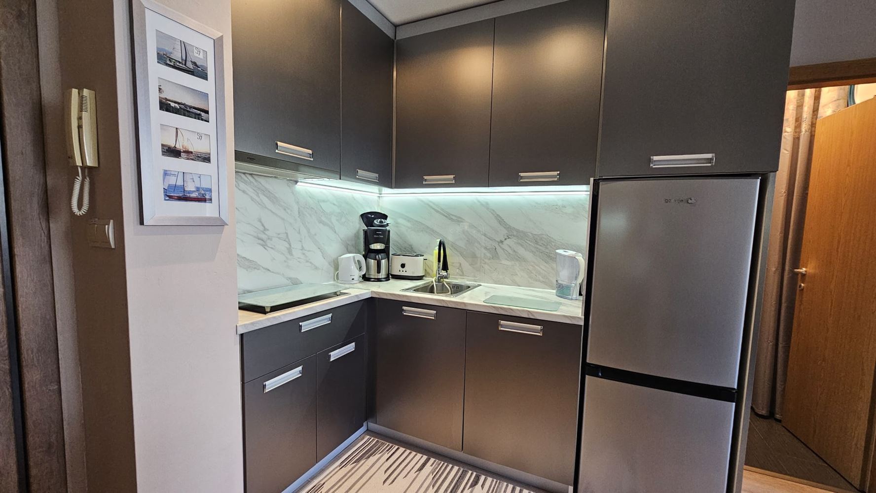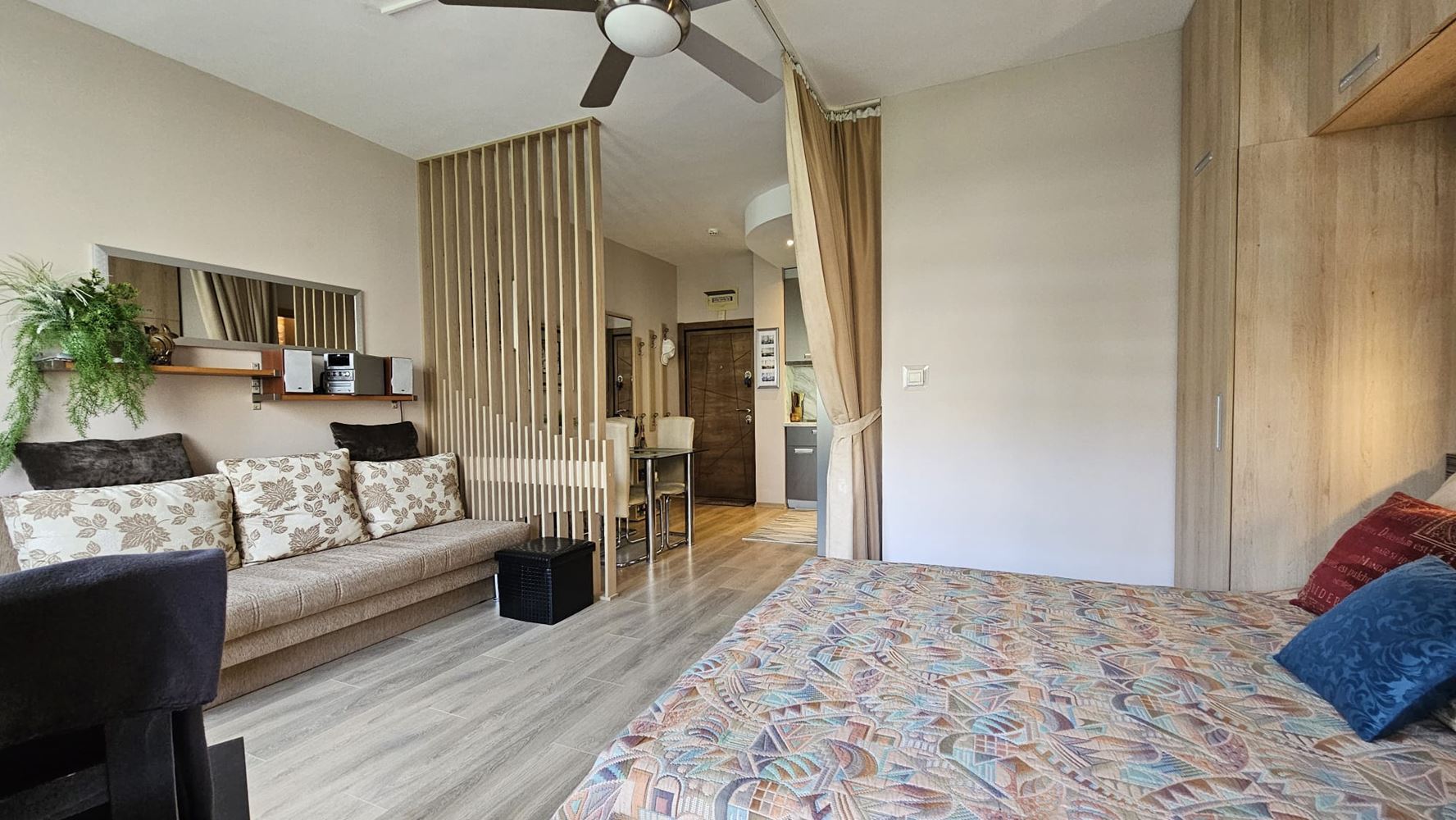 For sale is a stylish studio in a luxury complex located on the first line of the sea in the popular resort of Sveti Vlas. With a total area of 44,70 m², this cozy apartment is located on the third floor and offers the convenience of an elevator for easy access. The studio is fully furnished and consists of one spacious room that combines kitchen, dining area and relaxation area. The apartment has a bathroom and a cozy balcony from which you can enjoy the fresh sea air and beautiful mountain and sea views.