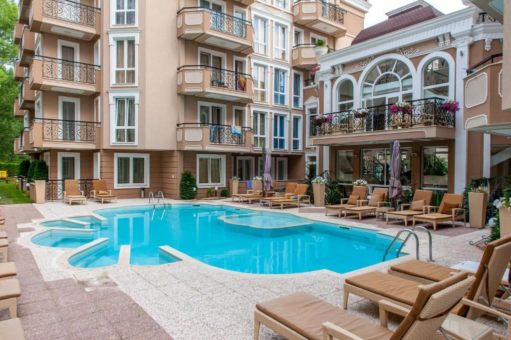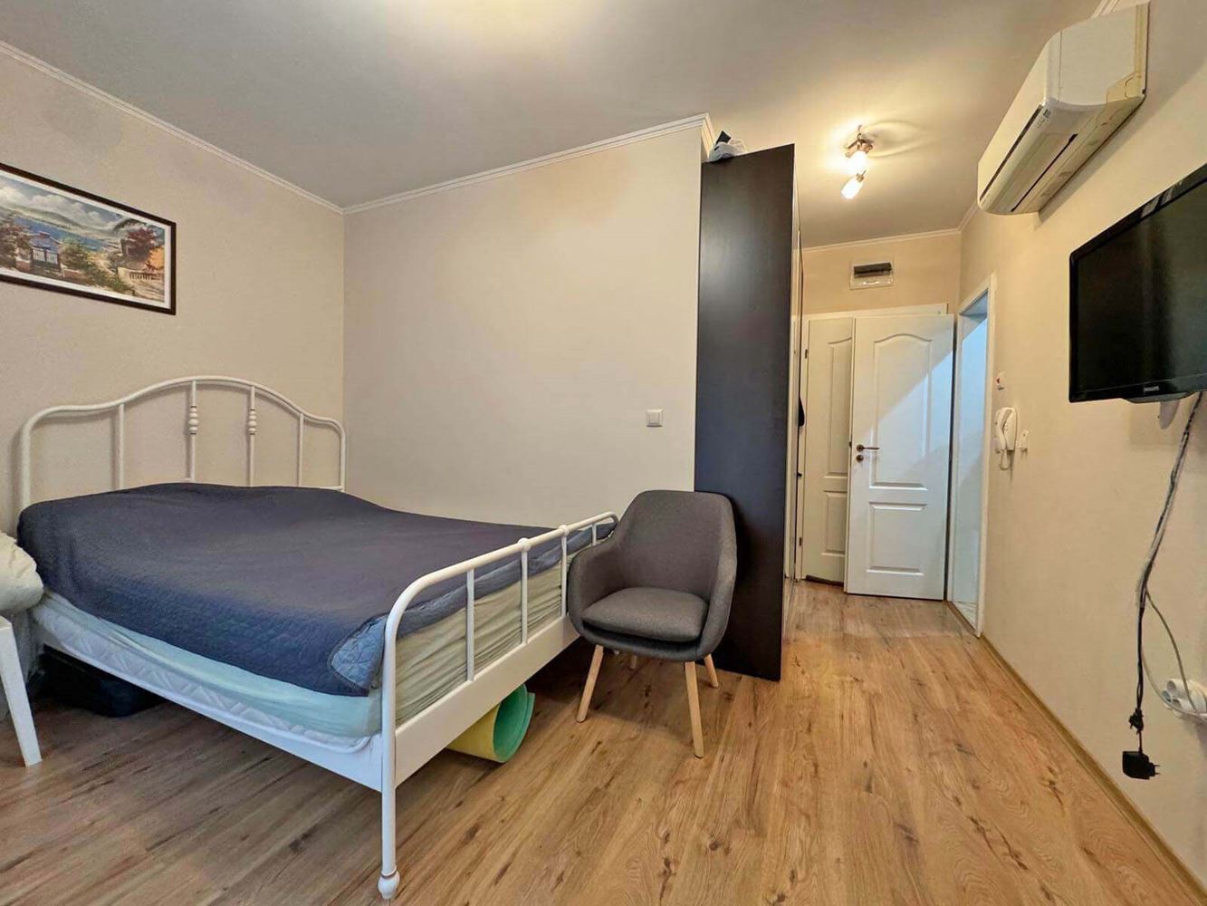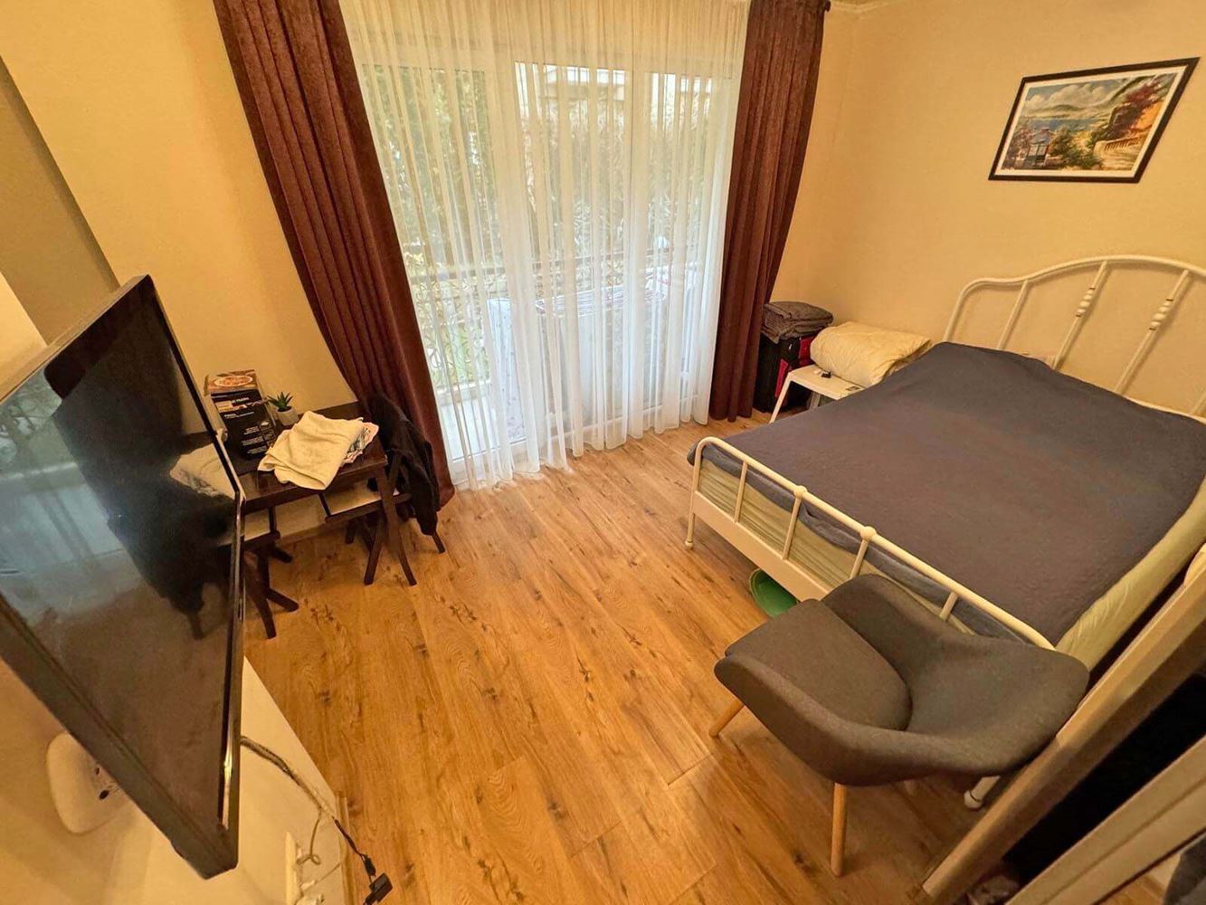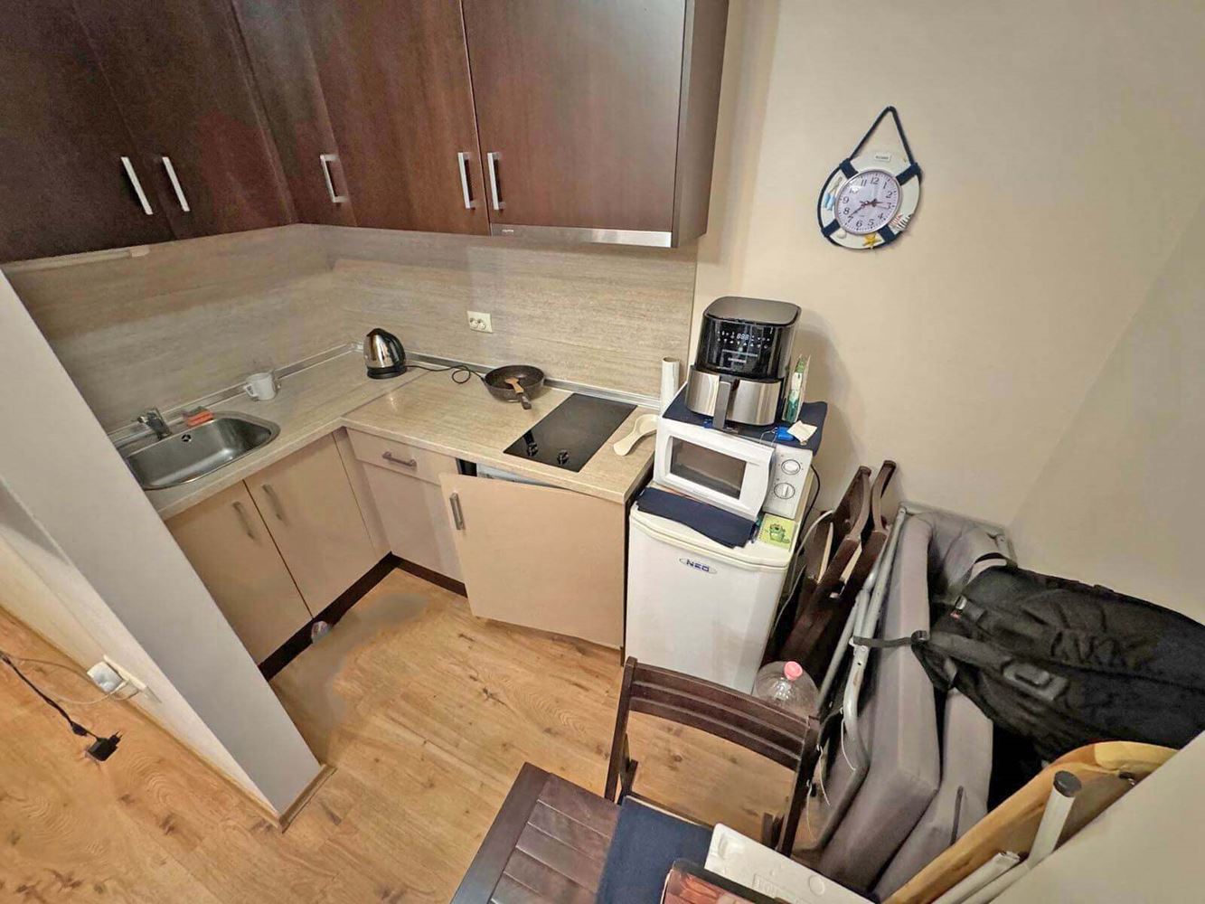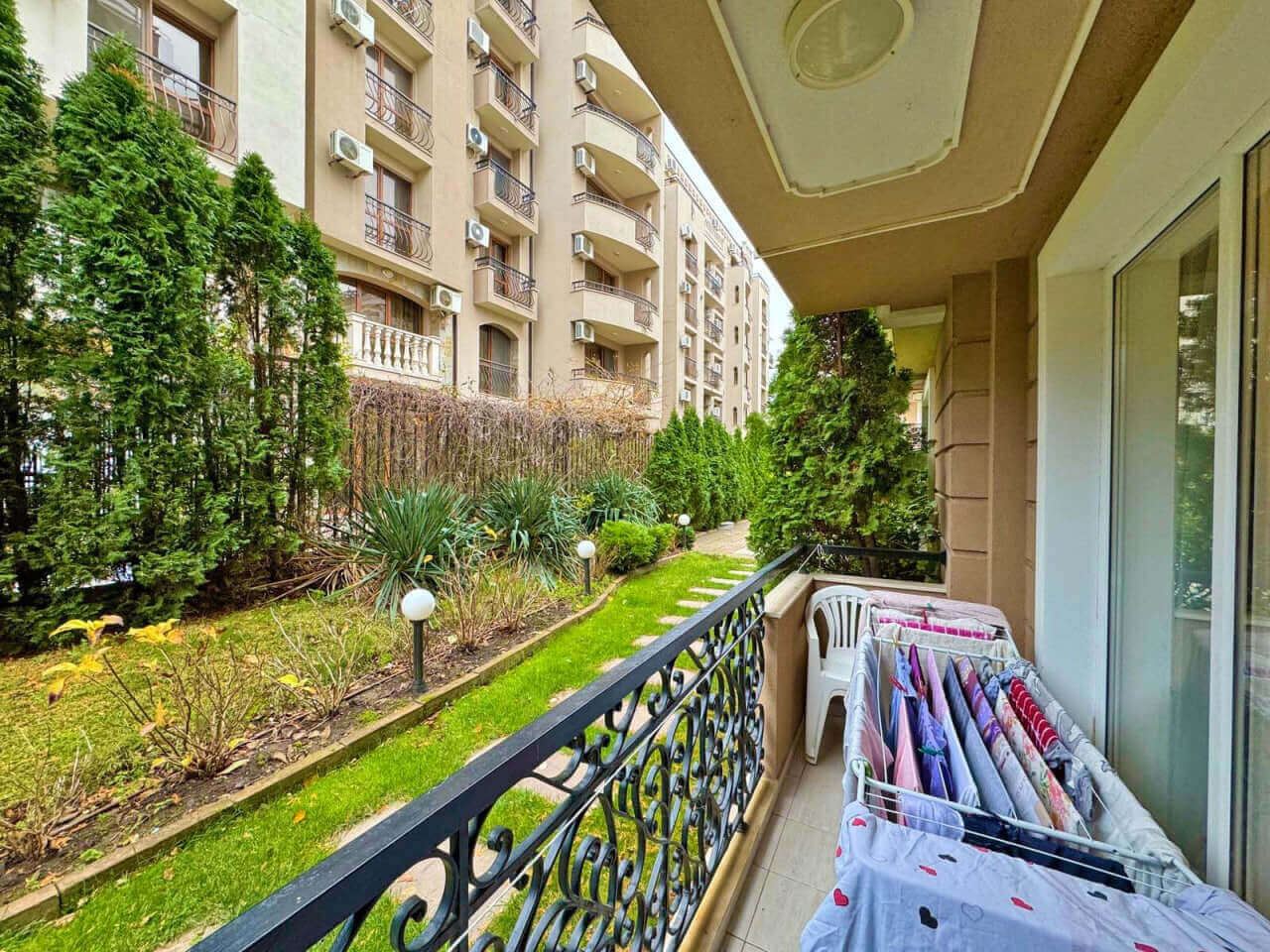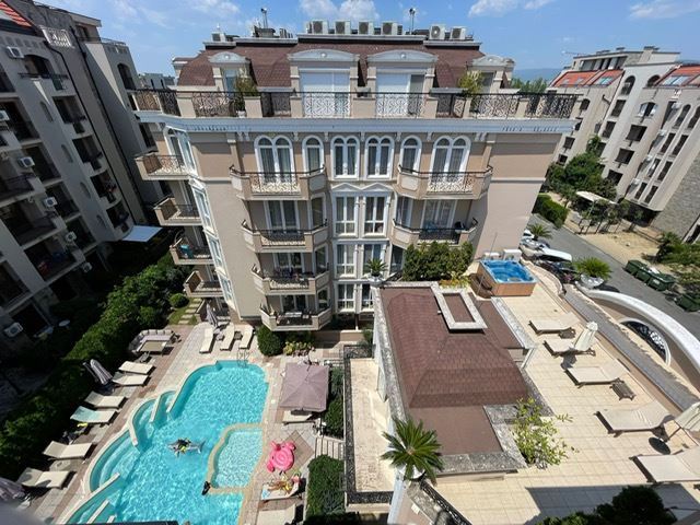 This stylish studio in a luxury residential complex in Sunny Beach is the perfect place for a family holiday. Located just 500 metres from the central beach, it provides the perfect balance between proximity to city entertainment and a quiet, cosy stay inside the complex. The 35 square metre ground floor apartament provides a modern and cosy space to live in. Stylish furniture and high quality equipment are included in the apartament, creating a comfortable atmosphere for living. The residential complex provides a rich set of services and entertainment for all members of the family. A huge outdoor heated swimming pool with a variety of attractions will be a great place for adults to relax, and the children's pool and playground will provide a variety of activities for kids. A spacious terrace with warm bathtubs will create a cosy place to relax and socialise. The spa and beauty salon in the complex will take care of your well-being and relaxation. A restaurant with a variety of cuisine will satisfy the most refined tastes, and two beautiful verandas will offer charming views of the surrounding area.