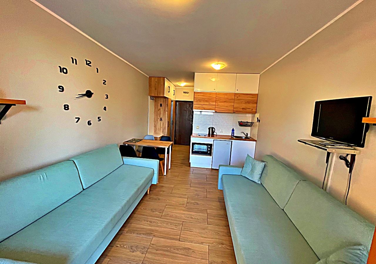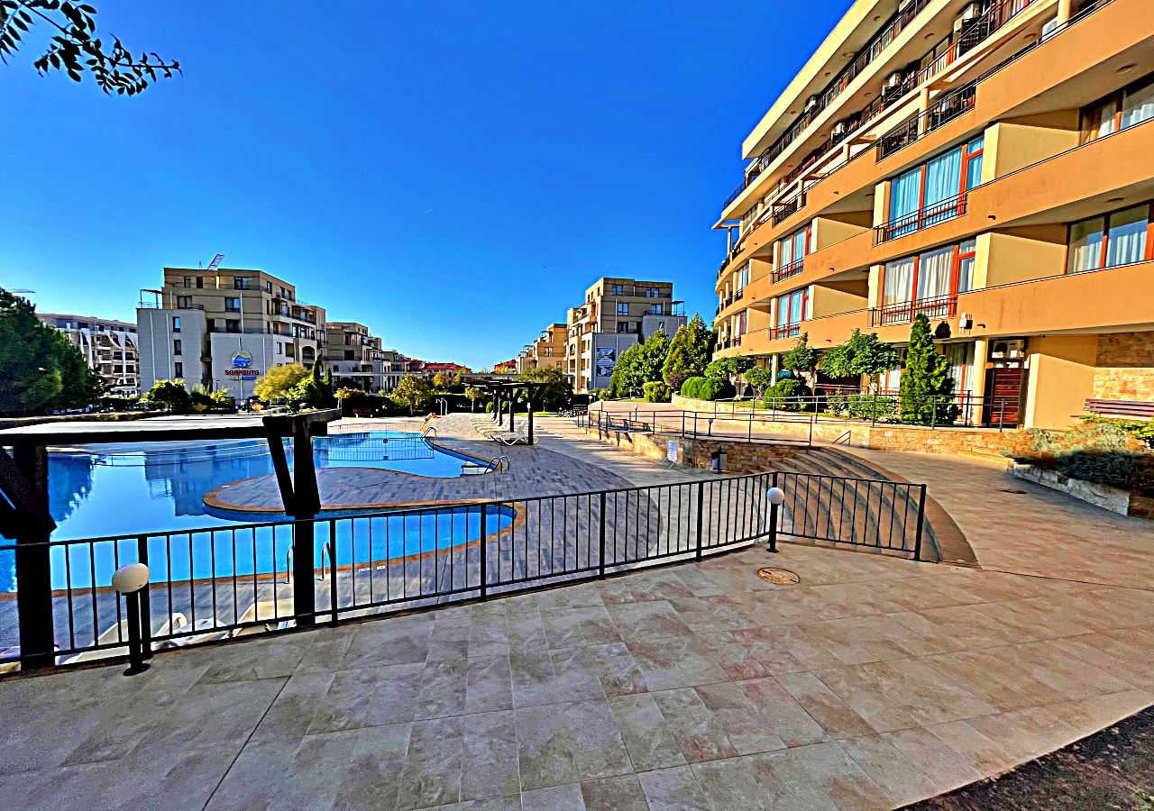 We offer a stylish studio in an elite complex in the picturesque resort of Sveti Vlas. With a total area of 33 m², this property is the perfect choice for anyone seeking comfort and convenience in the heart of Bulgaria’s Black Sea coast. The apartment consists of a bright and functional room combining a living area and kitchenette, a spacious terrace for relaxation and enjoying the fresh sea air, and a modern bathroom with all necessary amenities. The building features an elevator providing easy access to all levels.