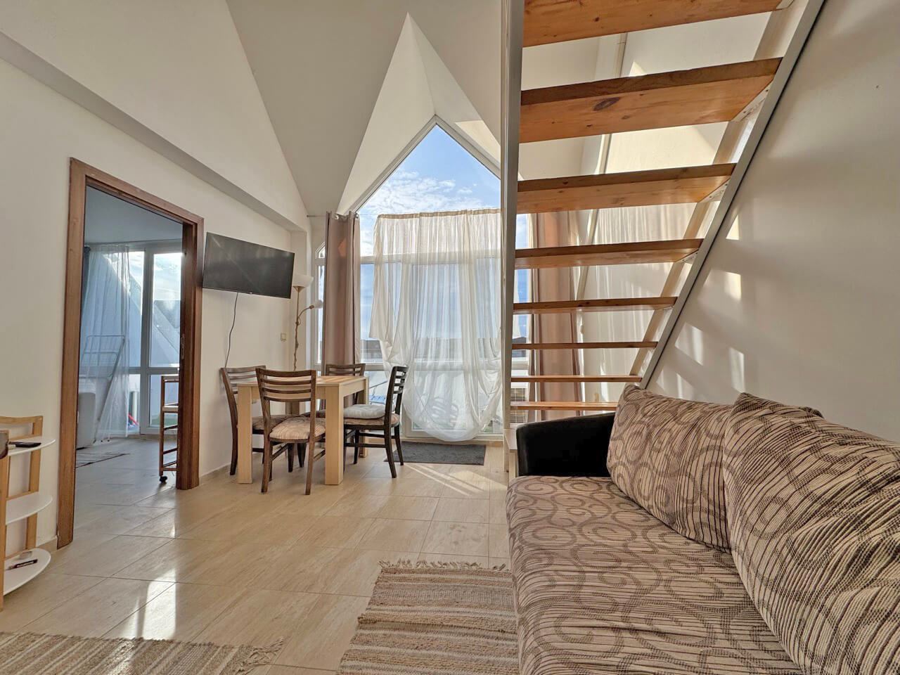 With a total area of 55 sq. m, the apartment is designed to offer maximum comfort and practicality. The cozy living room is harmoniously combined with the kitchen, creating a bright and welcoming space for relaxation, family dinners or meetings with friends. The two comfortable bedrooms provide the necessary privacy and tranquility, suitable for year-round living, holiday stays or rental purposes. The bathroom is modern and fully equipped, and the balcony adds extra value with a pleasant view of the surroundings, perfect for morning coffee or evening relaxation.