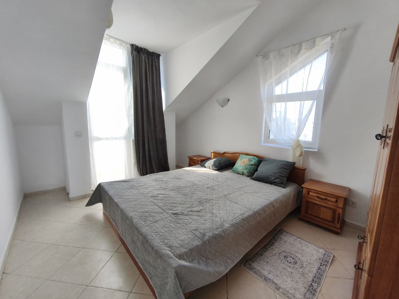 We present a bright and cozy one-bedroom apartment with a total area of 54 m², located on the top floor of a well-maintained complex in the heart of Sunny Beach. This property offers peace and privacy with no neighbors above, creating the perfect holiday atmosphere – ideal for personal use or as a smart investment with excellent rental potential. The layout is functional and convenient: a spacious living room with space for a kitchenette and dining area, a separate bedroom, a bathroom with WC, and two balconies that provide natural light and the opportunity to enjoy outdoor moments – morning coffee or evening relaxation with views of the surroundings and the complex. Warm afternoon sun and good ventilation make the apartment pleasant and comfortable all year round. The complex offers a full range of amenities for both active and relaxing stays: outdoor pools for children and adults, a well-equipped fitness center for a dynamic lifestyle, a secure playground for the little ones, a café and restaurant with a variety of tasty dishes, and a mini-market for daily essentials. A parking area is also available – a valuable convenience during the summer season. Well-maintained common areas add to the sense of order and comfort. The location in Sunny Beach is a true advantage – the area is among the most sought-after on the Bulgarian Black Sea coast, with developed infrastructure, rich entertainment options, and strong tourist interest. This makes the property an excellent choice for investors looking for a stable asset with high seasonal or year-round rental potential, as well as for families and couples dreaming of their own seaside retreat. If you're looking for the perfect combination of seaside charm, comfort, and return on investment, this apartment is your gem in Sunny Beach.