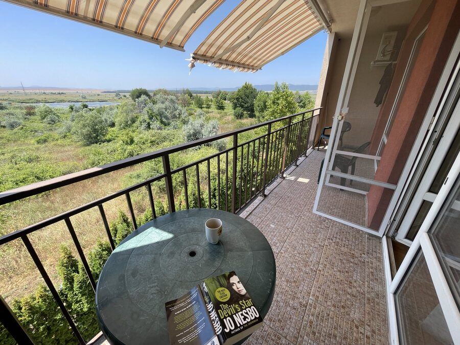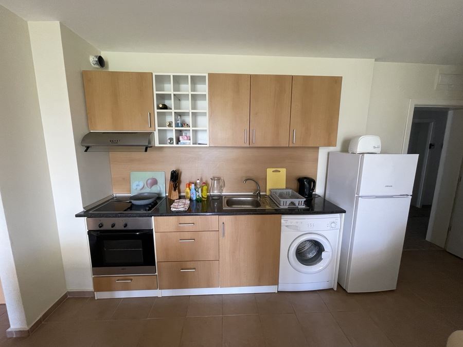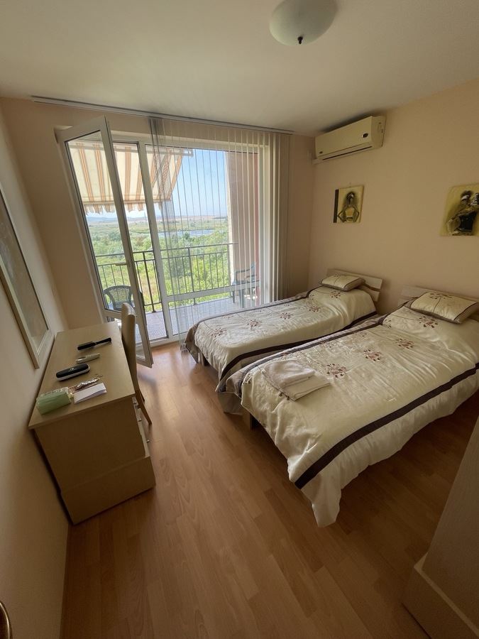 A small two-bedroom apartment in a secure residential complex in Sunny Beach is an ideal place to live for those seeking comfort and convenience in the resort. With a net area of 68.41 m2, it is distributed between a living room with kitchenette, two bedrooms, a bathroom with toilet, and a terrace overlooking the quiet part of the complex. The apartment is located on the third floor, which offers a wonderful view of the complex.