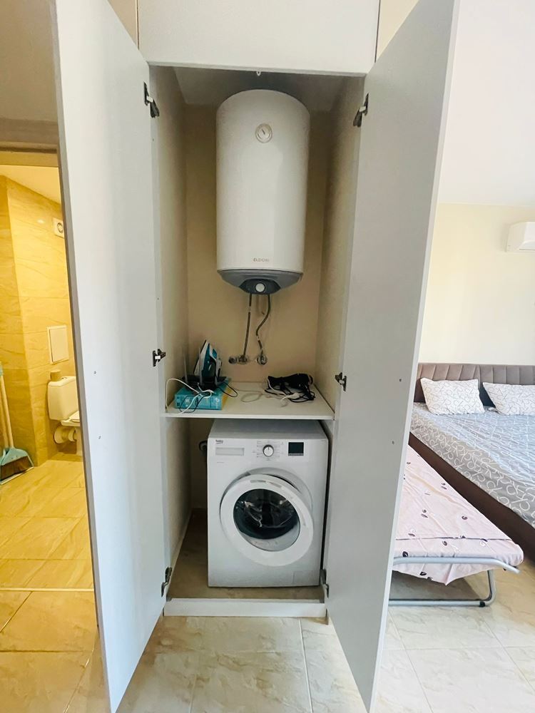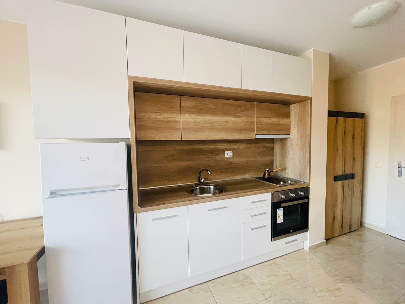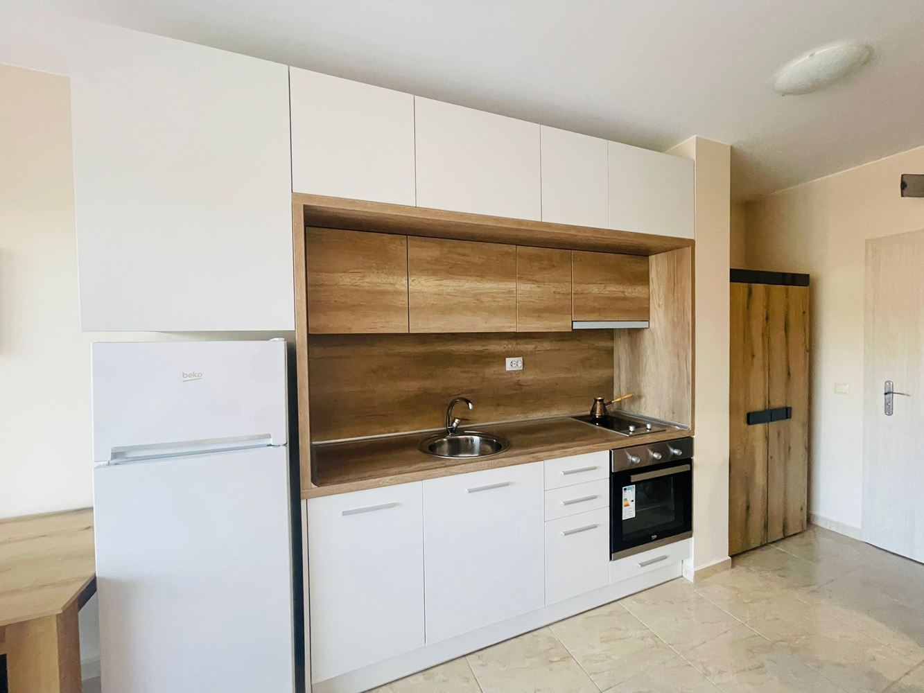 The studio is stylishly furnished and equipped with brand-new furniture and appliances, ready for immediate move-in. The kitchen is custom-made, functionally designed, and fully equipped with built-in hobs, oven, and washing machine – everything necessary for household comfort. The bright living area is well-organized, with enough space for a sleeping corner, relaxation, and dining, while the large windows contribute to the feeling of space and coziness. The bathroom is spacious, fitted with quality sanitary elements and practical layout. The terrace is wide and convenient – ideal for morning coffee or evening rest, with a pleasant view of the mountain and the greenery of the complex.