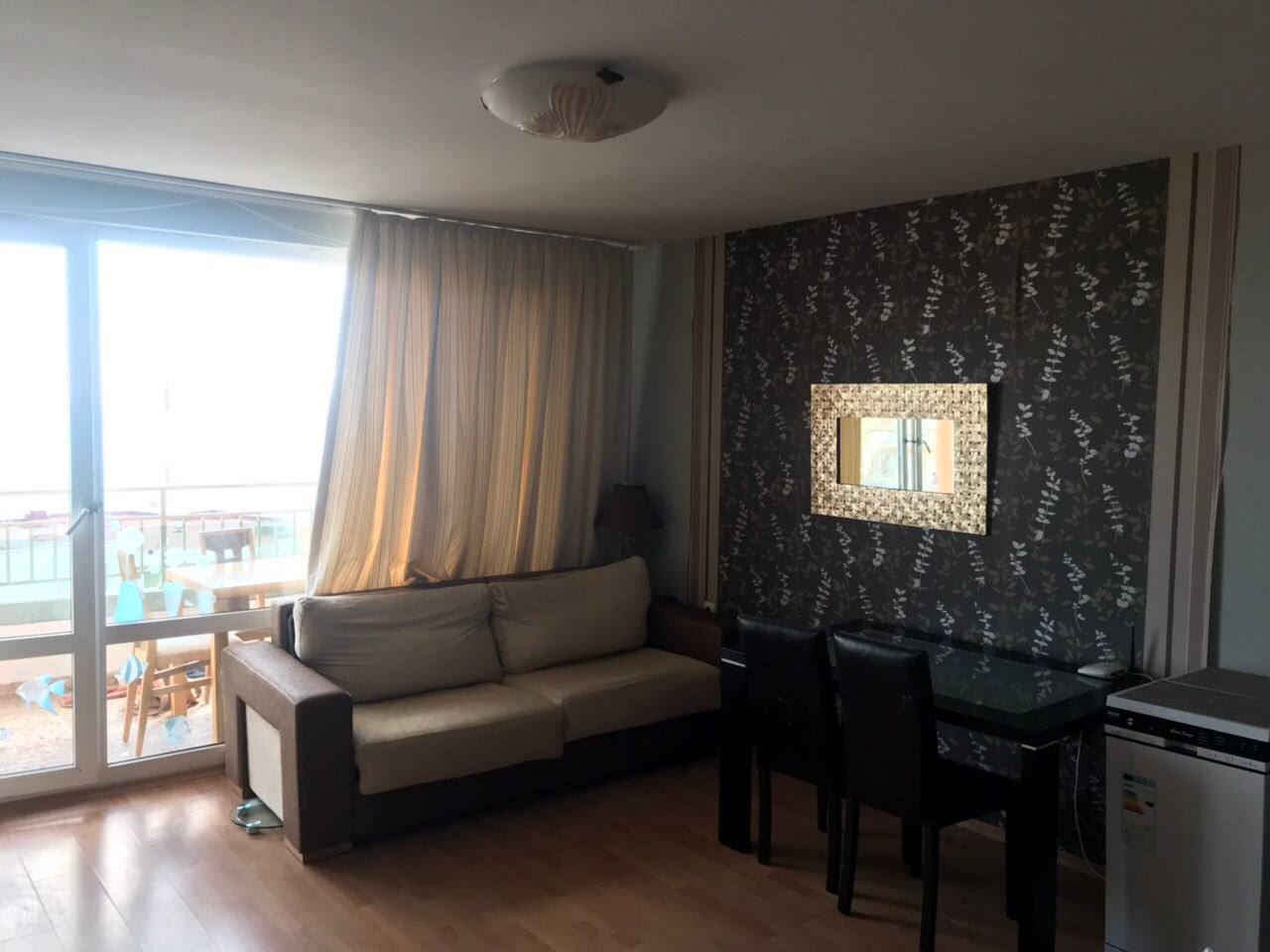 The apartment has an area of 60 m2 and is located on the fifth floor in a building with elevator. From the windows and balcony there is a wonderful view of the sea and the complex, which creates a unique atmosphere of tranquility and coziness. The apartment is fully furnished and equipped with all necessary appliances, making it ready for immediate occupancy. It consists of an entrance hall, living room with kitchenette, bedroom, bathroom and two balconies.
