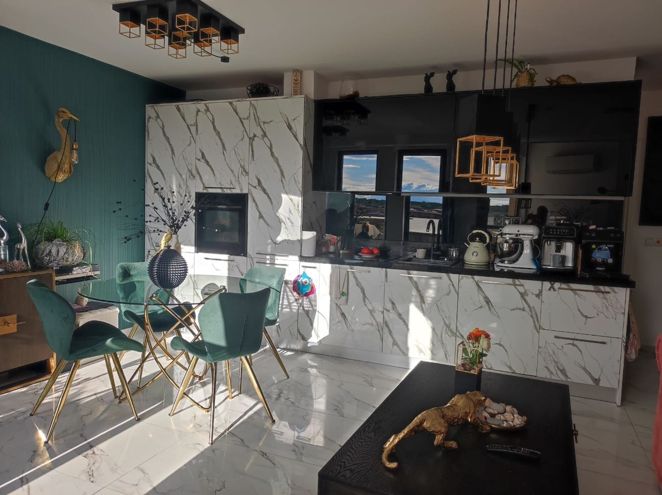 The apartment features a functional and generous layout, including a bright living area with kitchenette, two separate bedrooms, two bathrooms with toilets, and a large panoramic terrace offering a beautiful sea view. The spaciousness and natural light create a sense of freedom and comfort, while the terrace is the perfect place for relaxation, morning coffee, or evening moments with a sea breeze and views over the bay.
