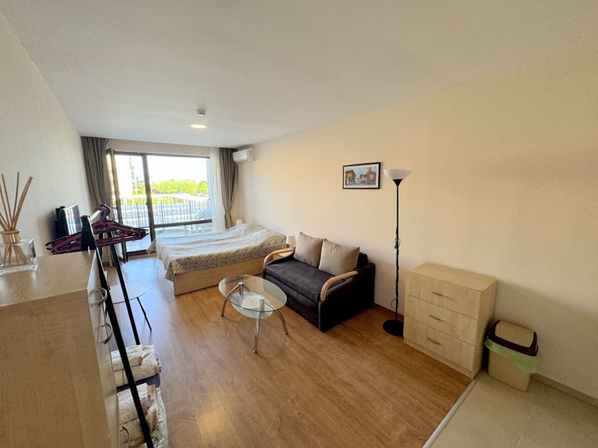 A wonderful opportunity to become the owner of a stylishly furnished studio with an incredible sea view, located in one of the most prestigious complexes in Sveti Vlas. The property has a total area of 48 m² and is located on the second floor of a building with a lift, which provides easy access for everyone. The apartment has a total area of 48 m² and is located on the second floor of a building with a lift, which provides easy access for everyone. The studio offers a spacious living area combined with a fully equipped kitchen, an ideal place to rest and relax after a long day at the beach. The balcony, which is perfect for morning coffee or evening moments under the stars, offers a breathtaking view of the azure sea. The bathroom is modernly equipped and offers everything you need for a comfortable everyday life. The property comes with all the appliances and furniture to meet the needs of even the most demanding customers.